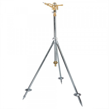 Zraszacze na statywie to precyzyjne urządzenia, gwarantujące dokładne i równomierne nawodnienie zieleni. Inwestycja w tego rodzaju zestaw jest bardzo opłacalna, ponieważ zraszacz pulsacyjny na statywie zużywa o wiele mniej wody, niż ma to miejsce w przypadku tradycyjnych form podlewania. Komplety składające się ze zraszacza i statywu są tańsze od zakupu pojedynczych elementów. Wydajny zraszacz pulsacyjny przy pracy z ciśnieniem o wartości 5,5 bar, zużywa jedynie 79 litrów wody w ciągu minuty, nawadniając w tym czasie powierzchnię blisko… 2000 m2 (średnica zasięgu strumienia to 50 m).