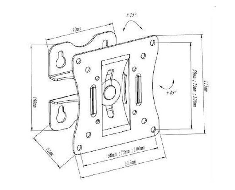 ✔️ uchwyt CV-25 pozwala na zawieszenie telewizora wyposażonego w mocowanie VESA : 50x50 mm, 75x75 mm, 100x100 mm,