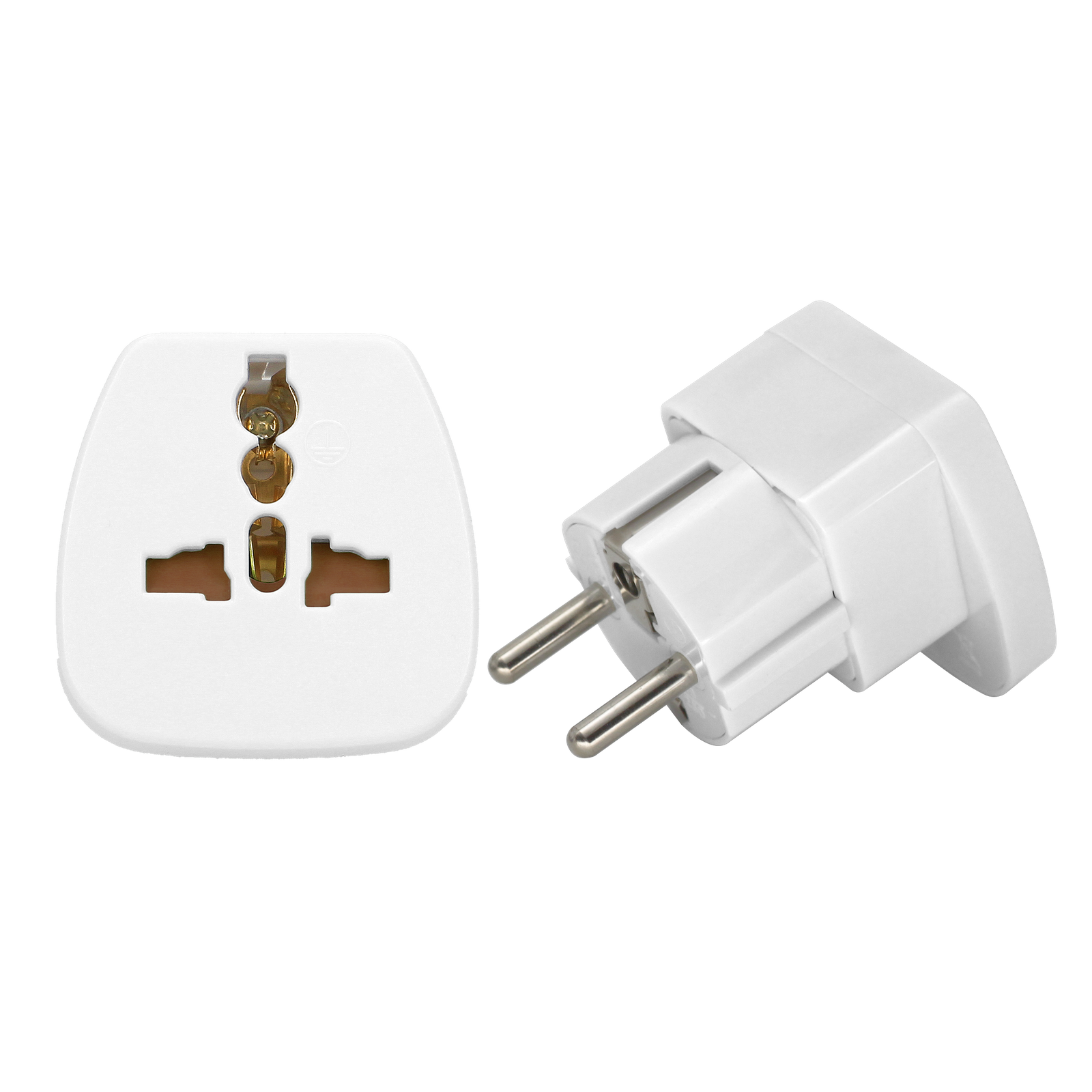 - Uniwersalny i niezastąpiony w podróży adapter (przejściówka), który umożliwia swobodne korzystanie z gniazdek elektrycznych w Europie (typ E, F), niezależnie od rodzaju wtyczki.