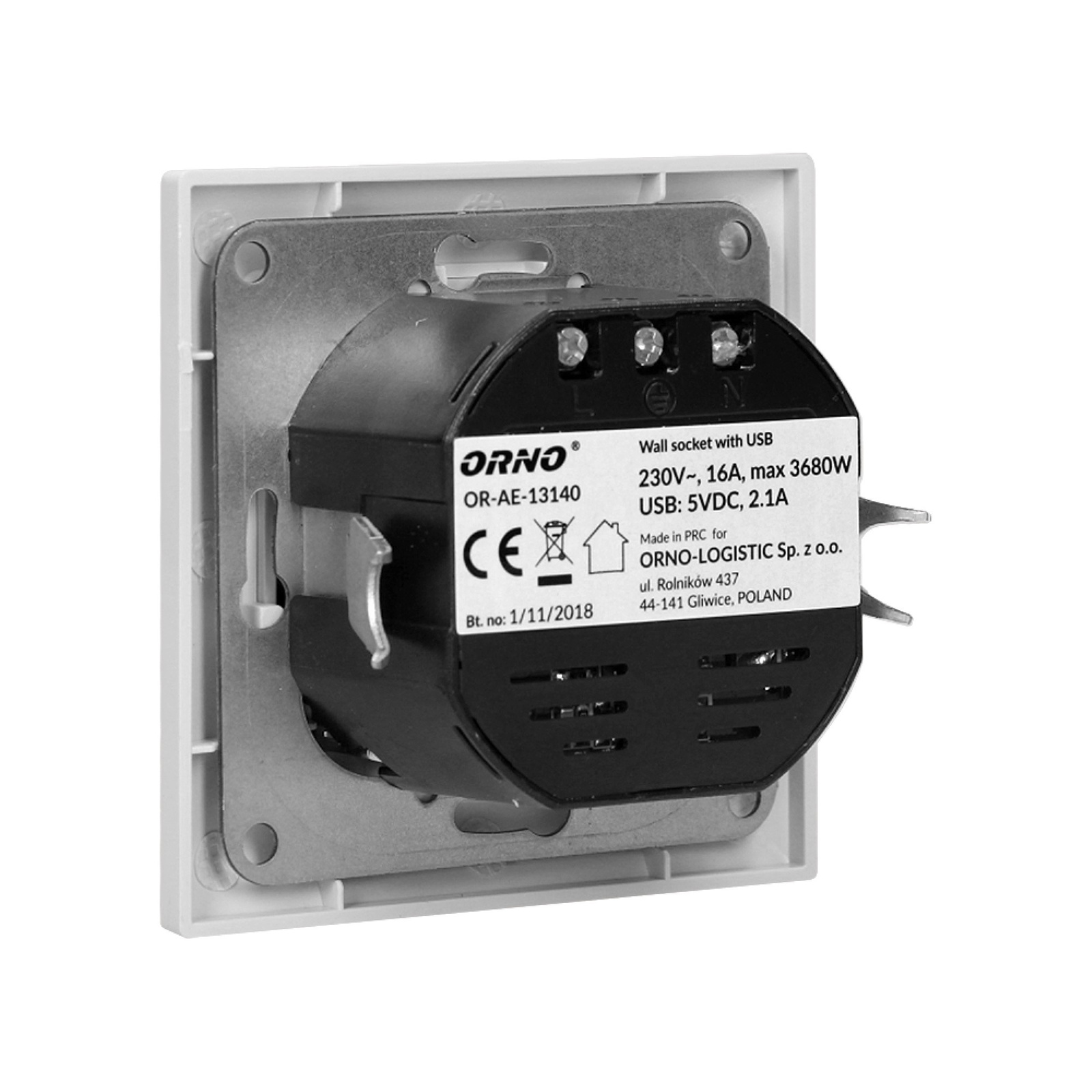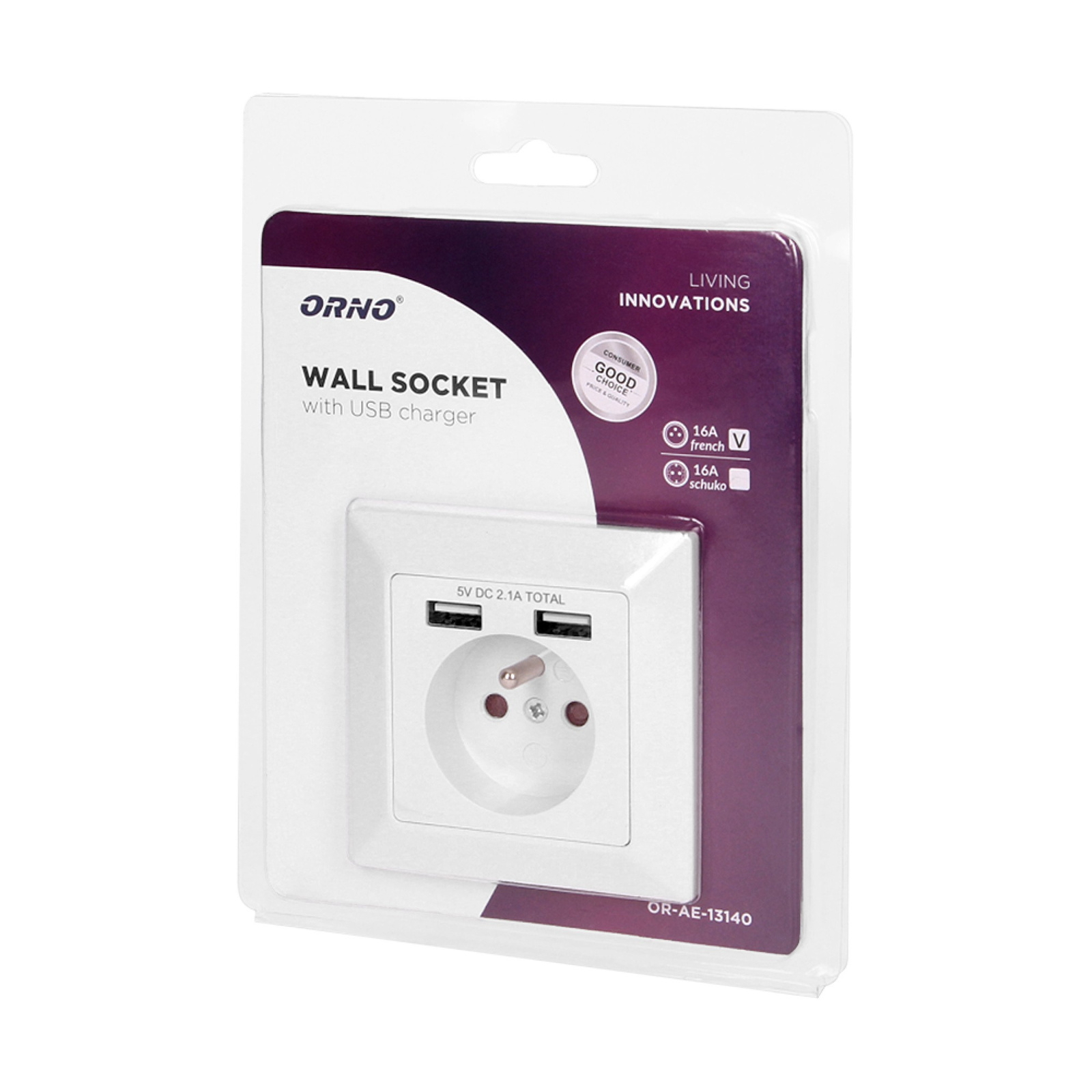 Gniazdo pojedyncze 2P+Z USBx2 OR-AE-13140