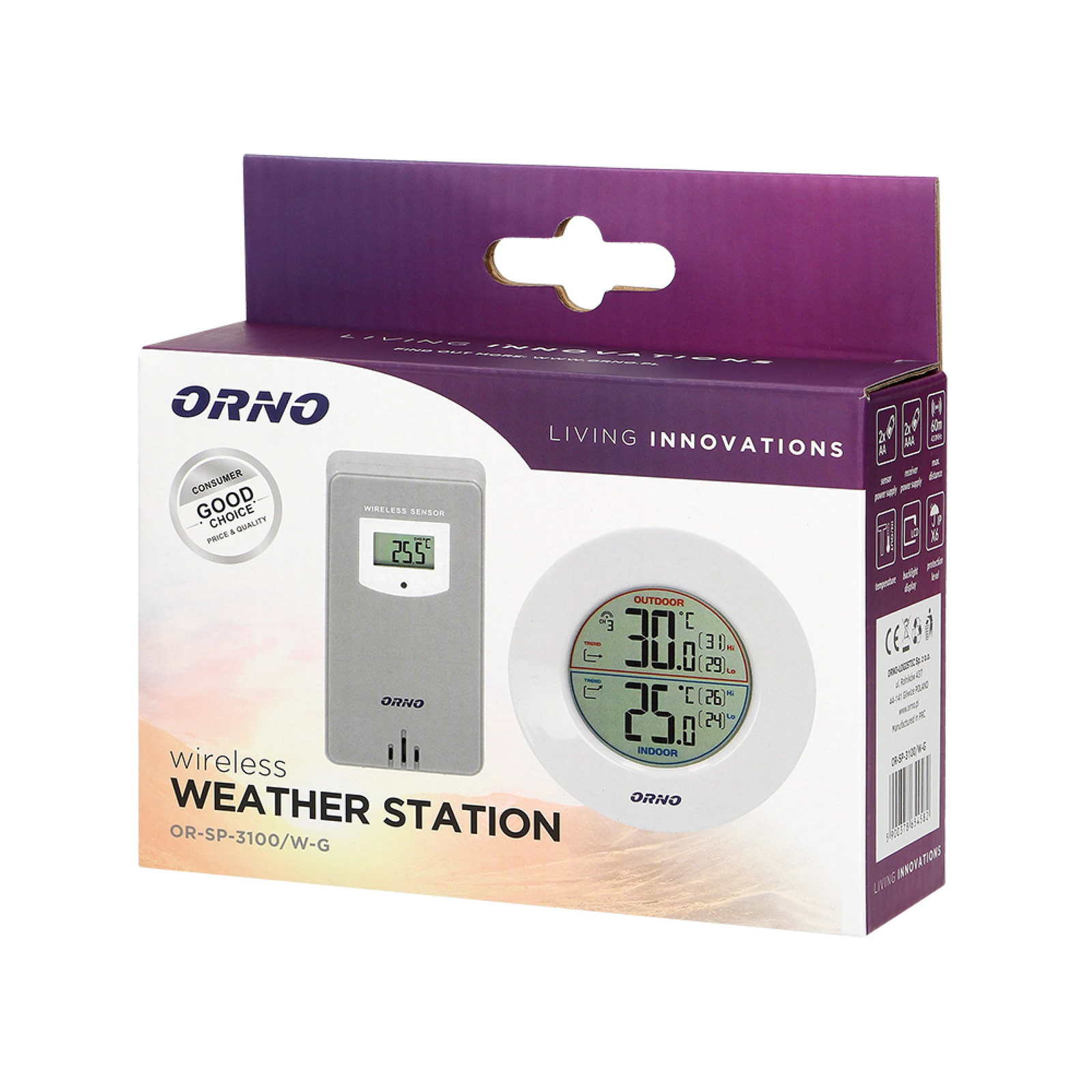 Bezprzewodowa stacja pogodowa z pomiarem temperatury zewnętrznej i wewnętrznej biało-szara OR-SP-3100/W-G