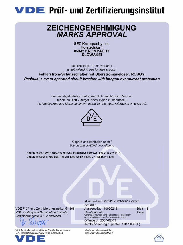 VDE DIN EN 61 009-1, DIN EN 61 009-2-1, |