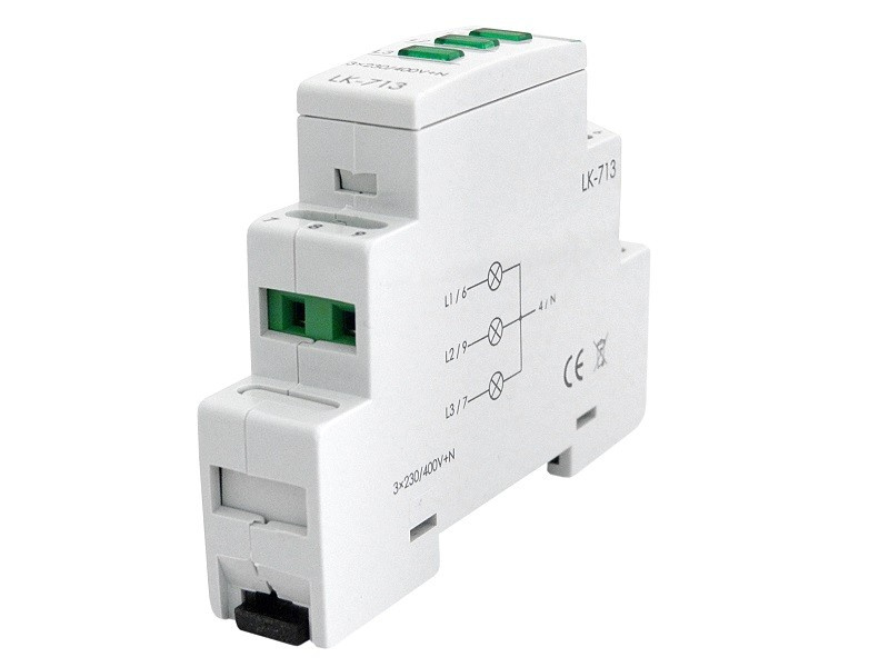 - LK-713G 3 fazowa zielona Kontrolka sygnalizacyjna Wskaźnik obecności fazy Lampka modułowa 3-fazowa zielona 3x230V+N AC F&F