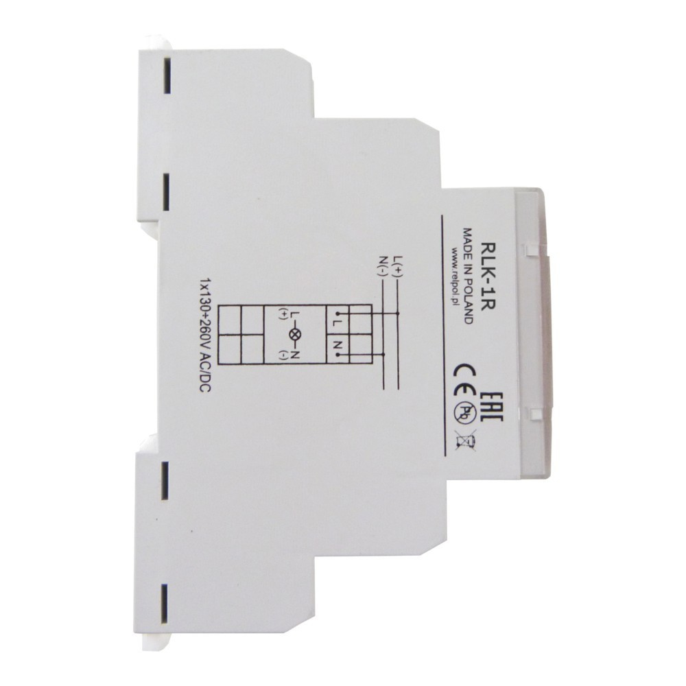 - Kontrolka sygnalizacyjna 1-fazowa czerwona 250V wskaźnik obecności fazy lampka na szynę TS35 RLK-1R Relpol