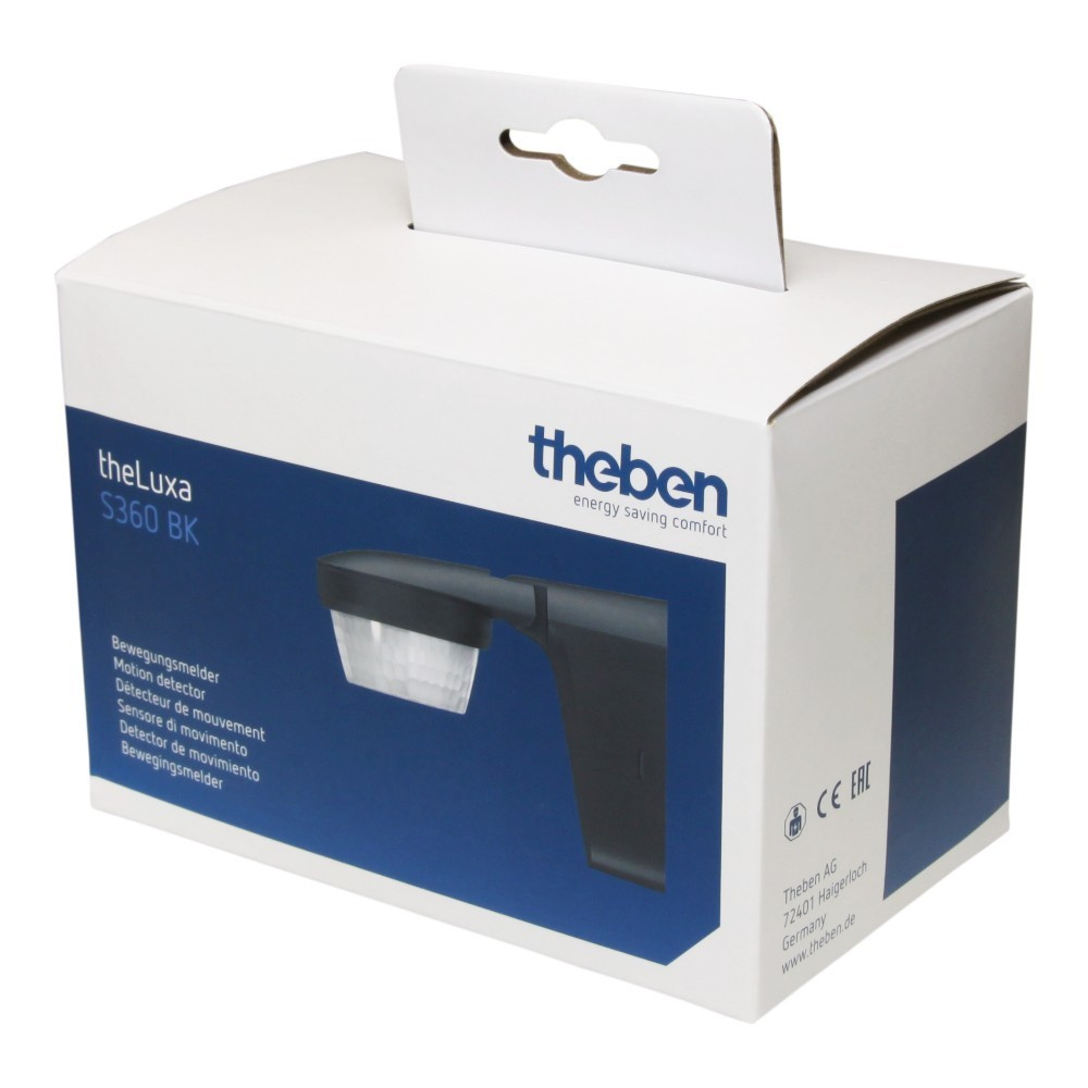 - Zewnętrzny ruchomy czujnik ruchu theLuxa S360 360° 16m IP55 czarny THEBEN