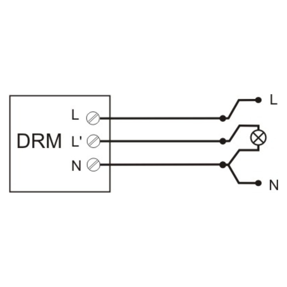 Działanie: Mikrofalowy czujnik ruchu DRM emituje i odbiera fale elektromagnetyczne wysokiej częstotliwości 5,8 Ghz. Czujnik wykrywa zmiany w odbiciu fal spowodowane przemieszczeniem się obiektu w obszarze detekcji. Czujnik rozpoznaje ruch obiektu do i od czujnika. Ruch w polu detekcji powoduje automatyczne załączenie oświetlenia. Od momentu załączenia ciągły ruch powoduje trwałe załączenie tego oświetlenia. Dopiero brak ruchu w polu detekcji wyzwala czas podtrzymania oświetlenia. Ponowny ruch w polu detekcji i jego zanik w trakcie odmierzania czasu, wyzwoli czas podtrzymania od początku. Charakter działania pozwala wykorzystać DRM jako czujnik obecności. Po nastawionym czasie oświetlenie zostanie wyłączone automatycznie. Czujnik ruchu wyposażony jest w automat zmierzchowy, uniemożliwiający załączenie sterowanego oświetlenia w ciągu dnia. Stan detekcji i gotowość do załączenia oświetlenia aktywowane są dopiero po zmierzchu. Czas aktywacji mikrofalowego czujnika ruchu może być korygowany przez użytkownika potencjometrem. Dodatkowo istnieje możliwość regulacji obszaru pola detekcji w zakresie promienia 3 ÷ 10 m (dla h = 2,5 m) oraz regulacja czasu załączenia odbiornika w zakresie 5 s ÷ 12 min. Załączenie odbiornika sygnalizowane jest świeceniem LED zielonej. Czujnik ruchu może pracować wewnątrz pomieszczeń. Czujnik pozwala na detekcję ruchu przez płyty drewniane, płyty kartonowo-gipsowe, szkło i tworzywa sztuczne.