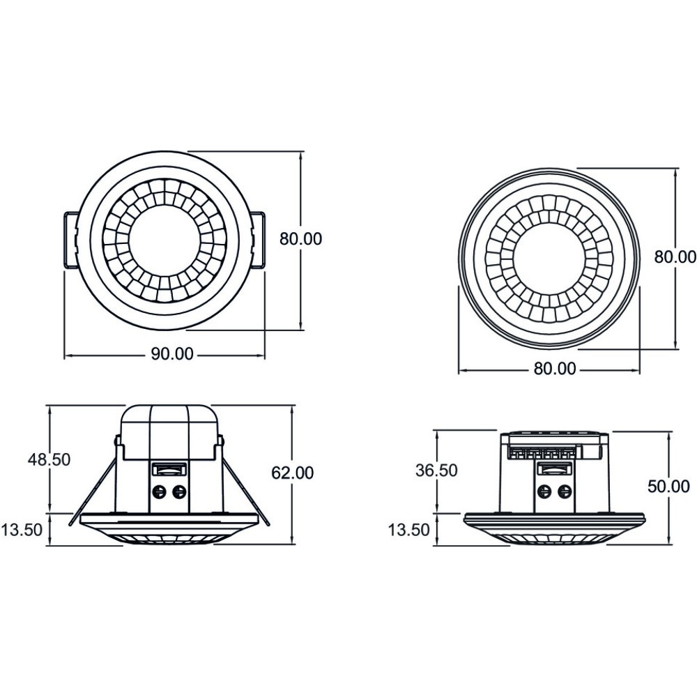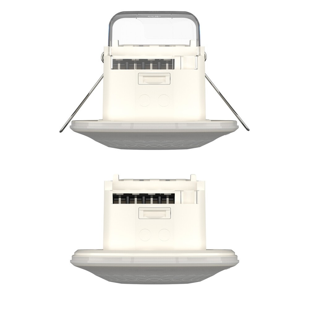 ➡️ Luxa 103 S360-100-12 UP_DE to podtynkowy czujnik obecności o zasięgu do 12 metrów. Dołączone do zestawu akcesoria pozwalają montować go zarówno w sufitach gipsowo-kartonowych, jak i podtynkowo. Wystarczy odpiąć sprężyny i wykorzystać adapter dopuszkowy. Po montażu stopień ochrony wynosi IP54, dzięki czemu czujnik sprawdzi się w pomieszczeniach o podwyższonej wilgotności (łazienki, toalety), a także na zewnątrz. Luxa 103 S360-100-12 UP_DE wytrzymuje obciążenie LED aż do 400 W, niezależnie od mocy podłączonego źródła.