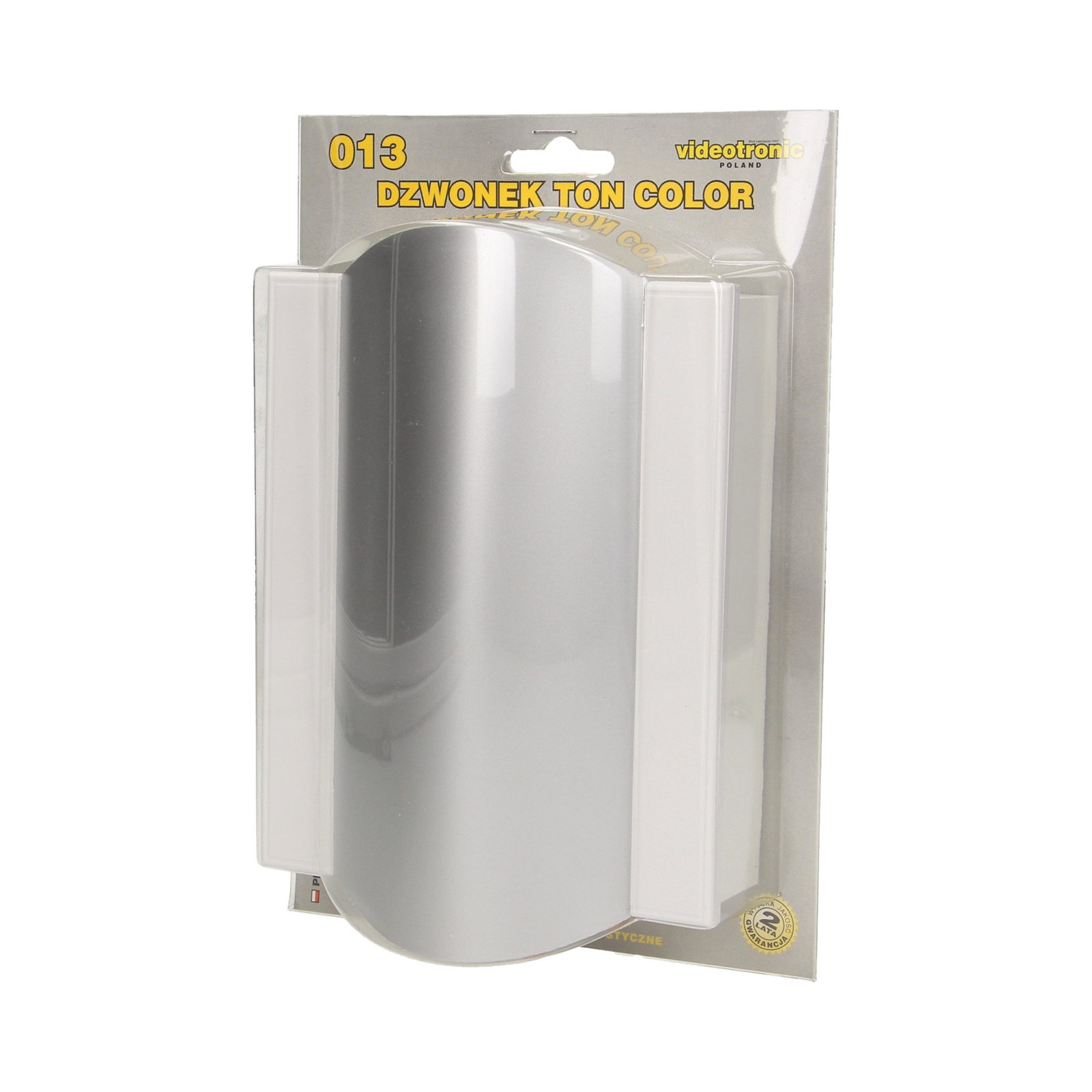- Dzwonek elektromechaniczny dwutonowy TON COLOR 230V, biało-srebrnyDzwonek elektromechaniczny, dźwięk: dwa tony BIM-BAM o uszlachetnionej, głębokiej barwie, kolory: biały, biało-złoty, biało-srebrny oraz czarno-srebrny