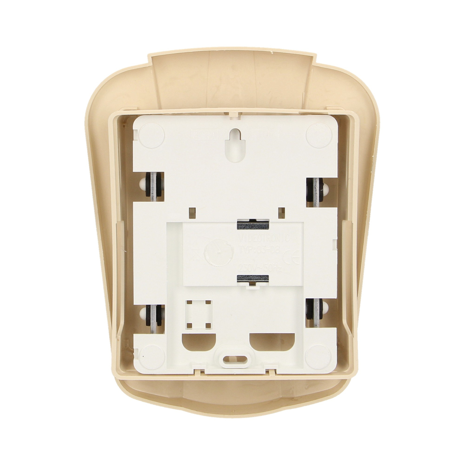 - Dzwonek elektromechaniczny dwutonowy 230V, beżowyDzwonek elektromechaniczny, dźwięk: BIM-BAM, funkcja wielokrotnego powtarzania dźwięku - TURBO, kolory: biały, beżowy