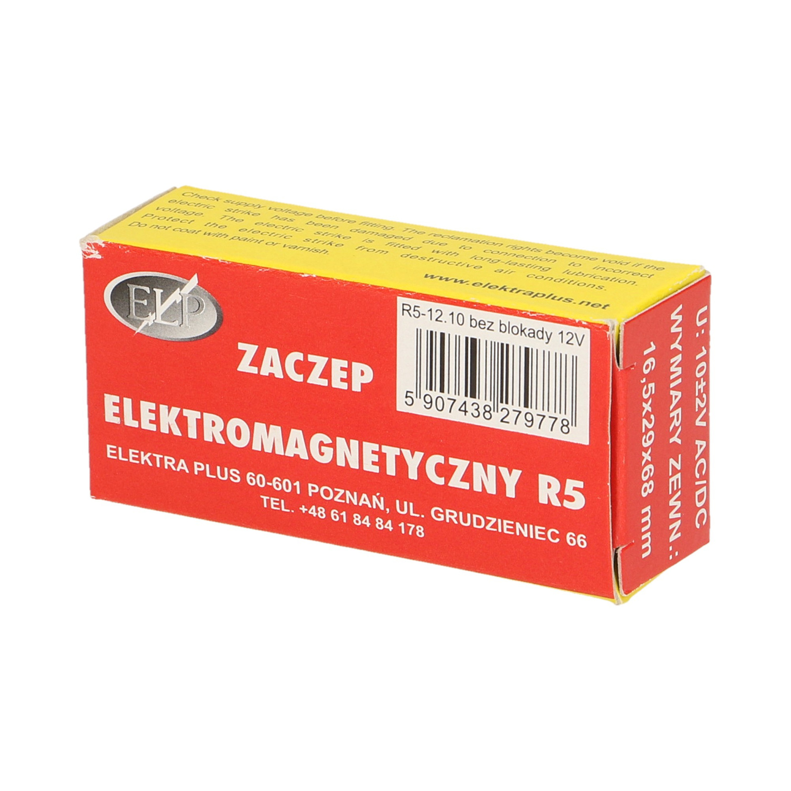 Elektrozaczep symetryczny, małogabarytowy R5-12.10 przeznaczony jest do zdalnego otwierania drzwi i furtek lewych i prawych oraz dwuskrzydłowych. Współpracuje z zamkiem zapadkowo-zasuwkowym lub zapadkowym. Przeznaczony do stosowania tam gdzie możliwe jest wykonanie gniazda o wymiarach 17 × 30 × 69 mm. Współpracuje z instalacją domofonową i wideodomofonową w drzwiach wejściowych budynków jedno i wielorodzinnych. Może być montowany na zewnątrz ze standardowymi szyldami. Symetryczna konstrukcja oraz małe wymiary umożliwiają zastosowanie go do systemu bram przesuwnych i ościeżnicach drzwi lewych i prawych. Regulowana zapadka w zakresie 3 mm umożliwia regulację luzu.