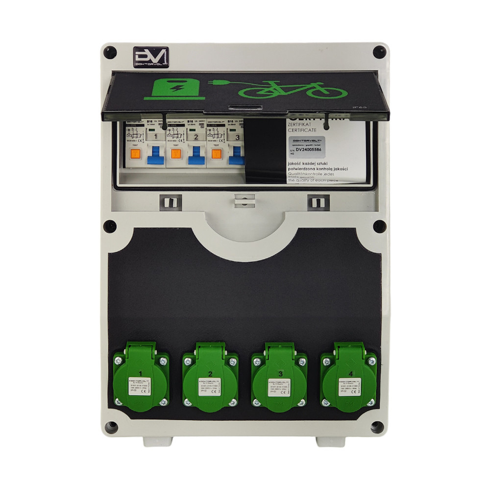 Stacja ładowania rowerów elektrycznych 12 modułowa 4x230V 4xRCBO Doktorvolt DV-2137