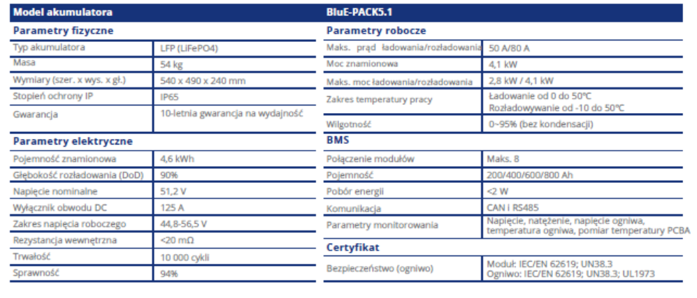 1. Moduł bateryjny magazynu energii Kstar BluE-Pack5.1 (2 sztuki):
