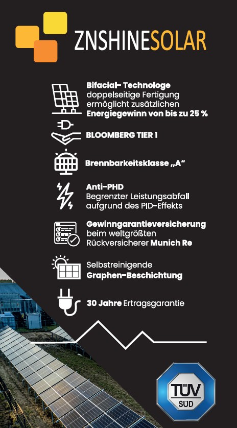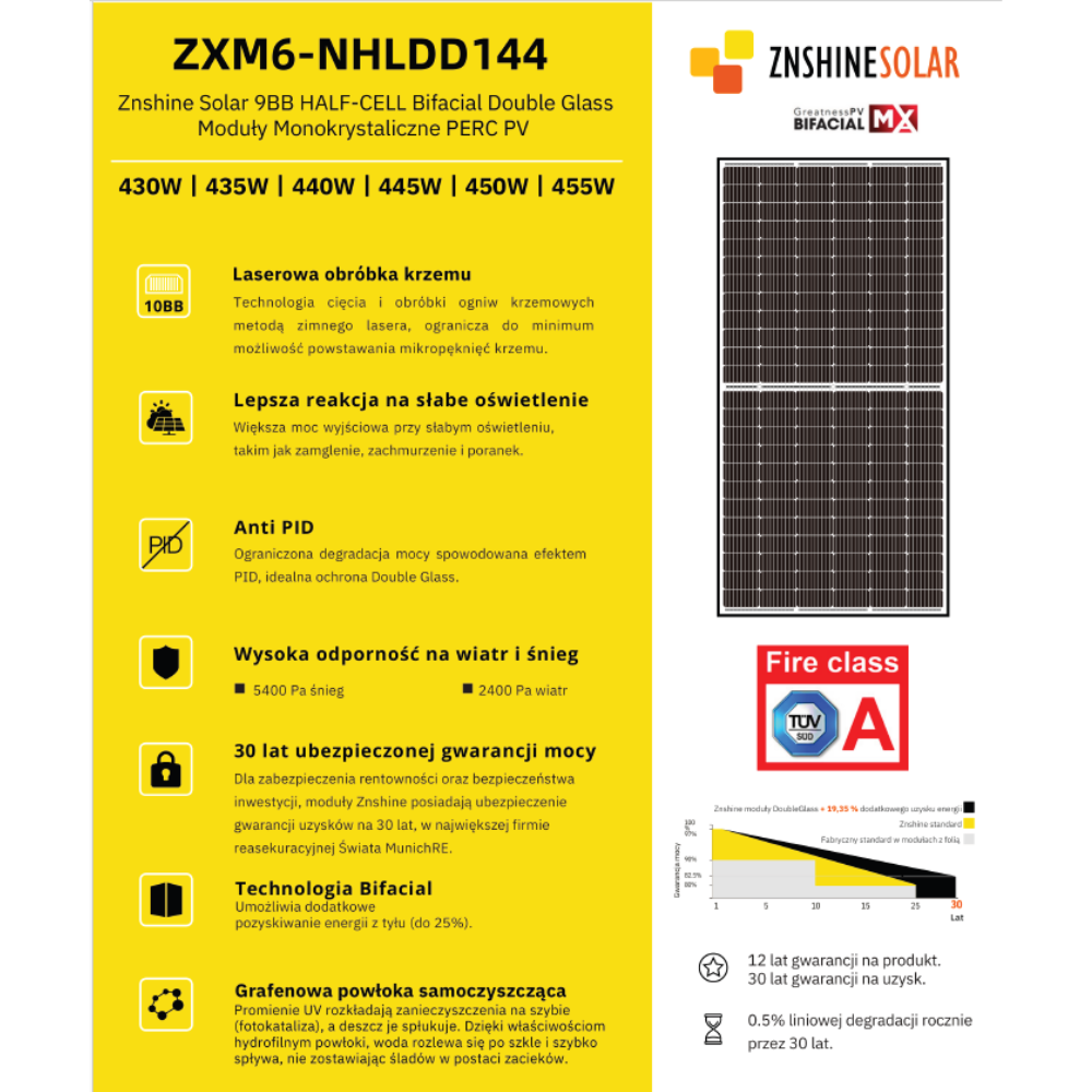 3. Panele fotowoltaiczne ZNShine 450Wp bifacial szkło-szkło (22 sztuki):