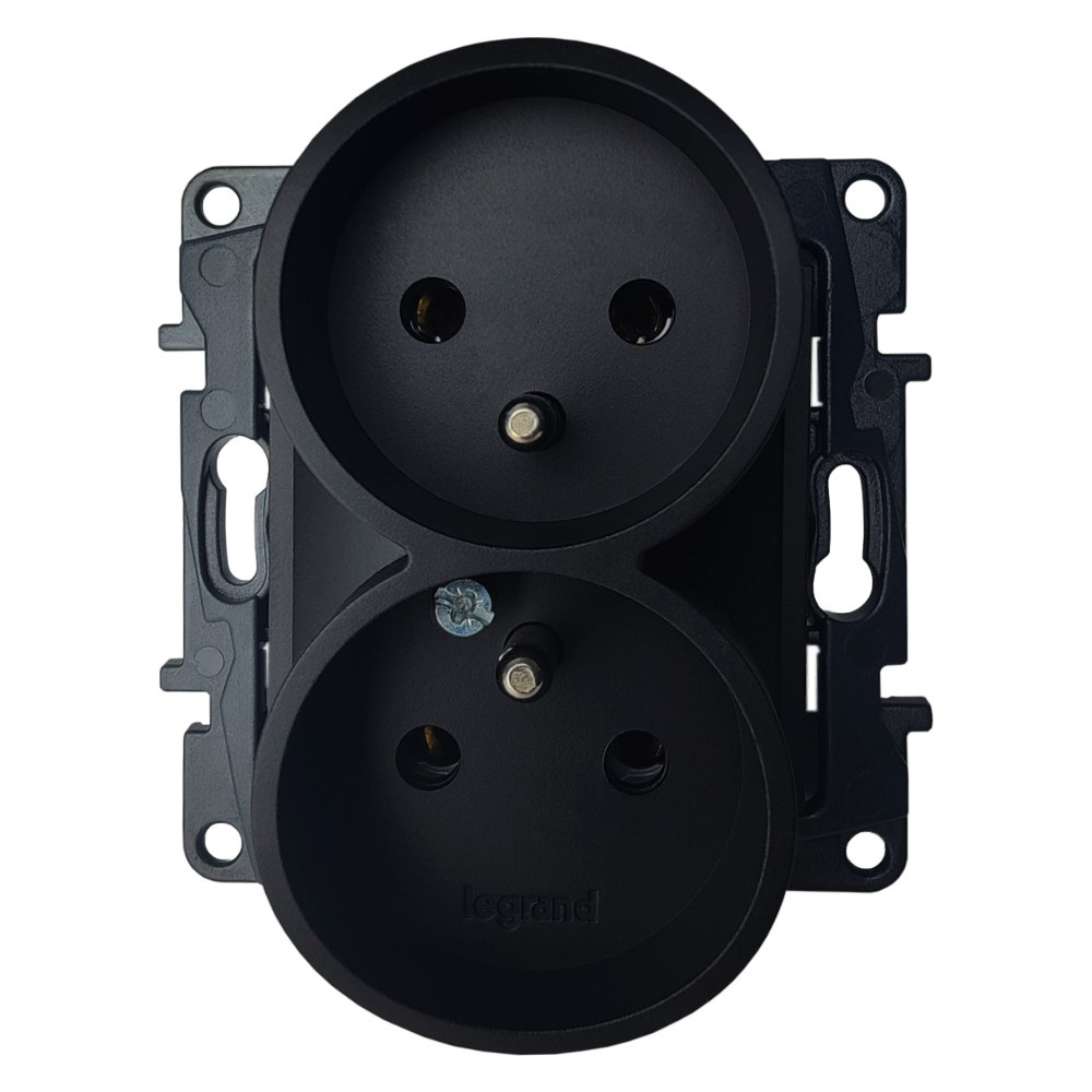 Gniazdo zasilające podwójne z uziemieniem 2x 2P+Z czarne Niloe Step Legrand 863532