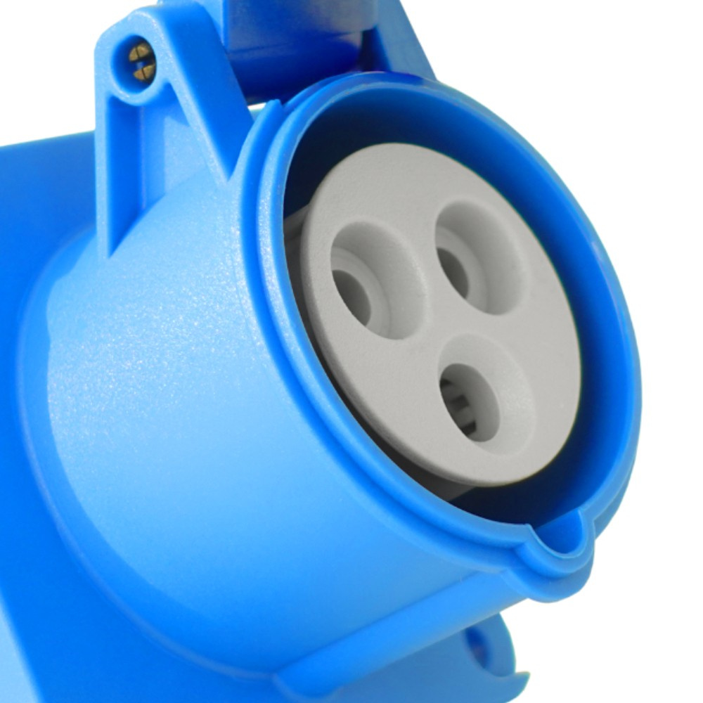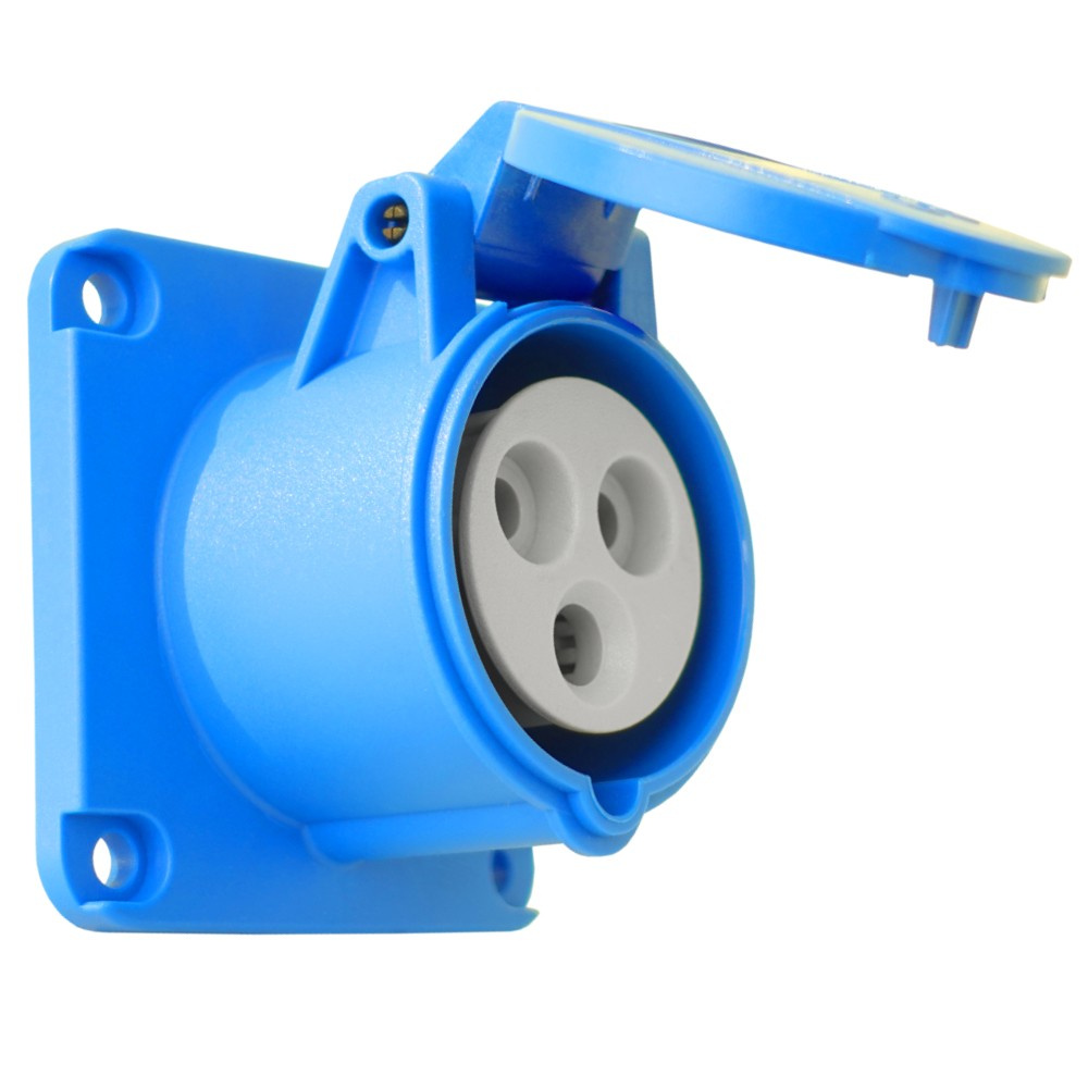 Gniazdo tablicowe 230V IP44, przeznaczone do przemysłu, magazynów, hal produkcyjnych i budownictwa. Solidna konstrukcja i niklowane styki zapewniają trwałość i niezawodność w wymagających warunkach.