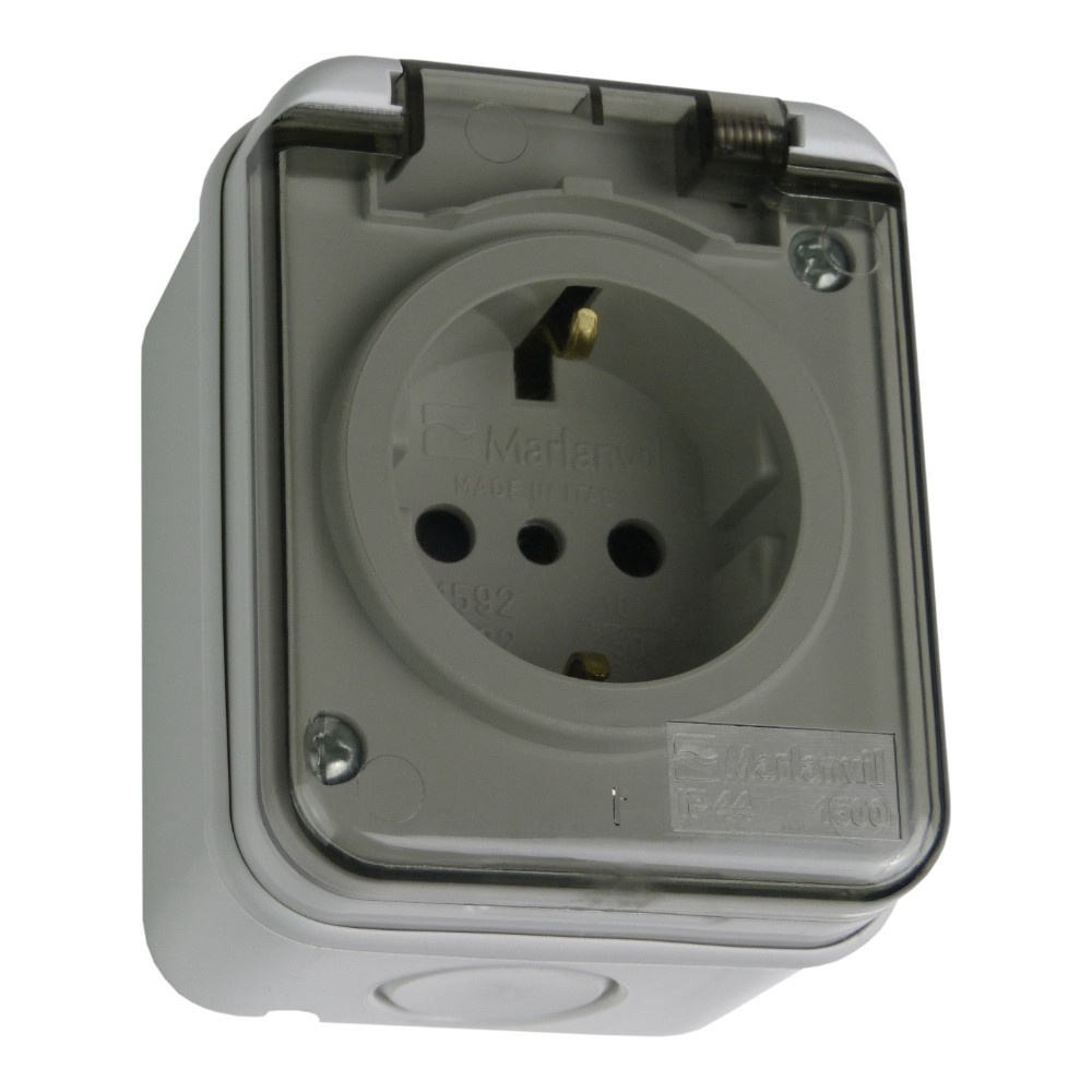 - Gniazdo pojedyncze schuko natynkowe IP44 szare 1592 Marlanvil