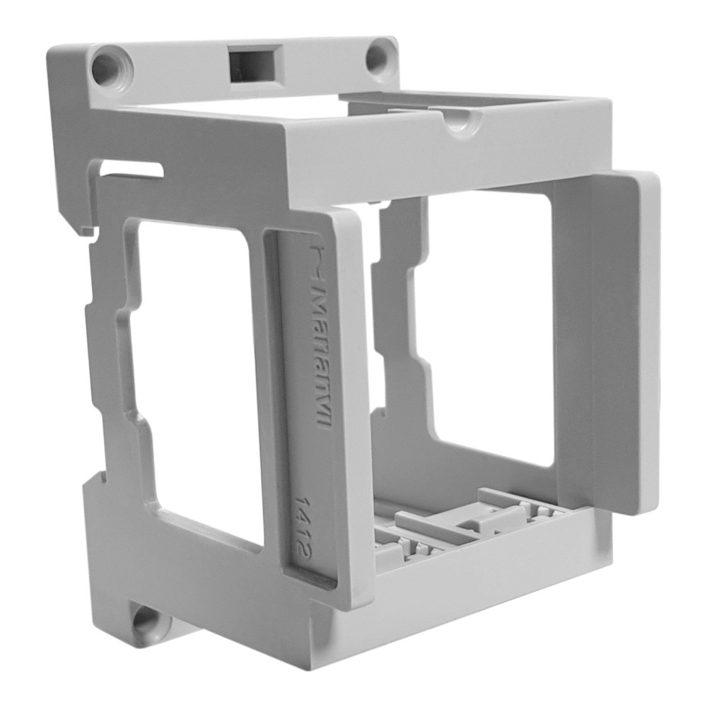 Podstawa pod gniazda 230V i przełączniki firmy Marlanvil, umożliwiająca montaż tych urządzeń na szynie TH35. Produkt zajmuje trzy moduły wg normy DIN.