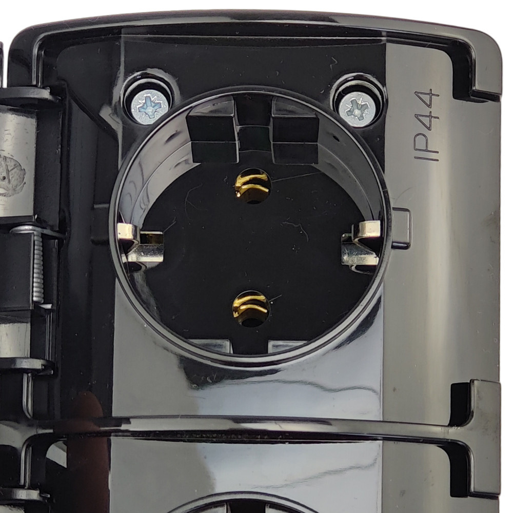 - Gniazdo podwójne SCHUKO natynkowe ViPlast Koala IP44 czarne 182‑05 Hermetyczne gniazdo o wymiarach 75 × 123 × 48 mm VG-2 3541