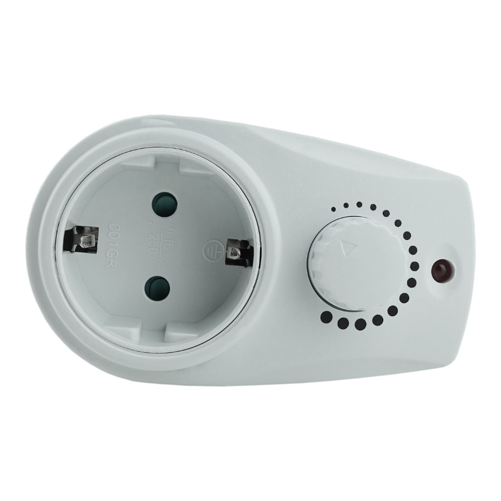 Ściemniacz z gniazdem służy do regulacji oświetlenia (np. lamp stołowych, podłogowych czy wentylatorów). Atutem jest płynna regulacja pokrętłem - od pełnej mocy świecenia do całkowitego wygaszenia (wyłączenia) oświetlenia.