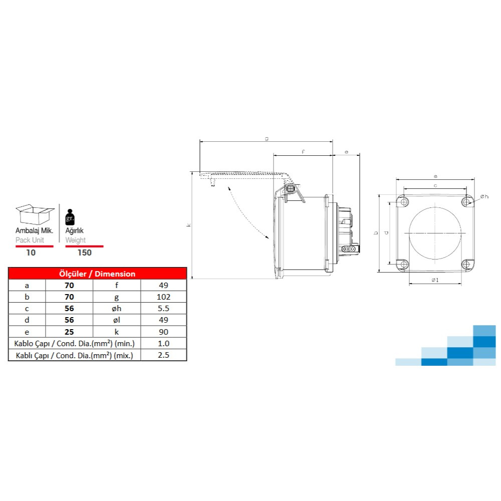 Gniazdo tablicowe proste CEE 400V 16A/4P 70x70 mm 3122-321-1670