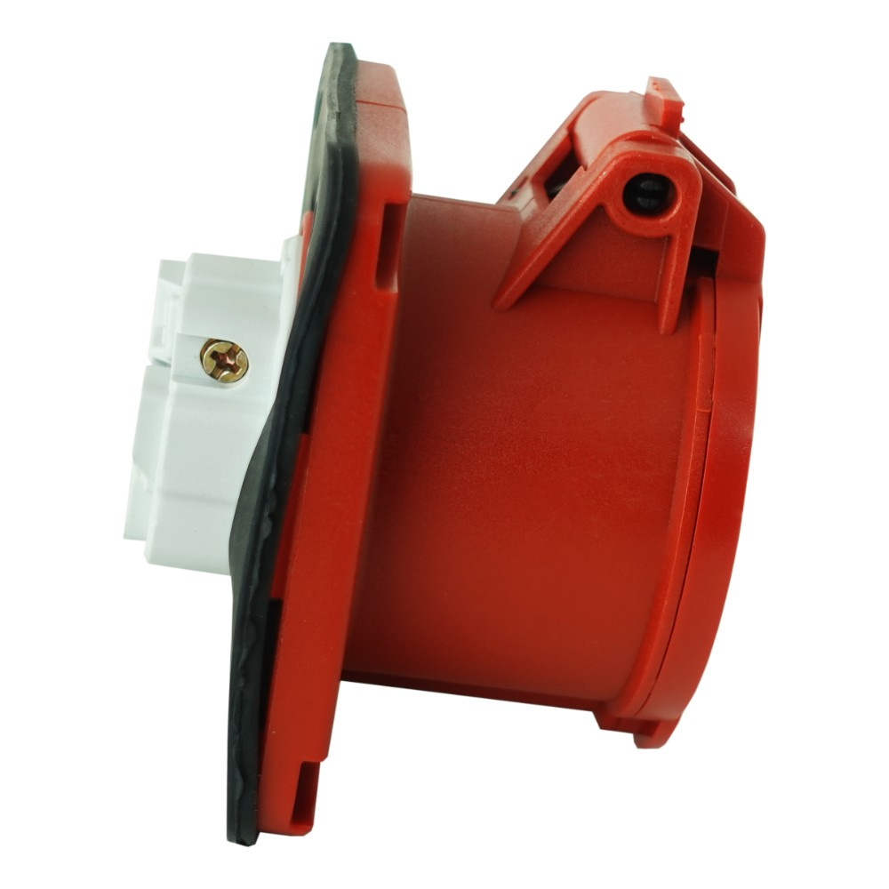 ➡️ Wysokiej jakości gniazdo tablicowe proste 400V o stopniu ochrony IP44. Gniazdo znajdzie zastosowanie w przemyśle, magazynach, halach produkcyjnych, placach budowy i wielu innych obszarach. Gniazda mogą być stosowane jako komponent rozdzielnic budowlanych, puszek rozdzielczych itp. Solidna konstrukcja zapewnia wysoką odporność na uderzenia.