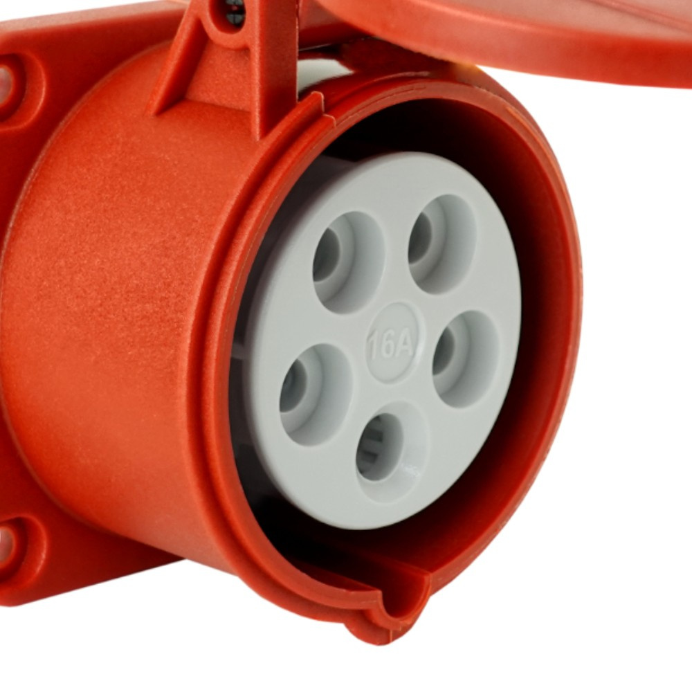 ➡️ Wysokiej jakości gniazdo tablicowe proste 400V o stopniu ochrony IP44. Gniazdo znajdzie zastosowanie w przemyśle, magazynach, halach produkcyjnych, placach budowy i wielu innych obszarach. Gniazda mogą być stosowane jako komponent rozdzielnic budowlanych, puszek rozdzielczych itp. Solidna konstrukcja zapewnia wysoką odporność na uderzenia.