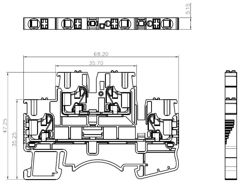 Instalacja elektryczna złożona z wielu przewodów musi zapewniać ciągłość przepływu prądu w obwodzie. Złączki przelotowe są montowane na szynie DIN TH/TS 35 i umożliwiają łączenie przewodów oraz ich mostkowanie. Złączki szynowe serii DSKK2.5 umożliwiają szybkie i wygodne łączenie przewodów o przekroju 0.2 - 2,5mm2 (26 - 12 AWG) przy pomocy zacisków sprężynowych. Obudowy złączek zostały wykonane z wysokojakościowych tworzyw sztucznych PA66 oraz UL94V-0. Wszystkie elementy metalowe w złączce zostały wykonane z powlekanego stopu miedzi. Złączki szynowe przeszły wiele testów potwierdzających ich jakość i wytrzymałość. Złączka 2-piętrowa umożliwia połączenie 4 przewodów na dwóch torach.