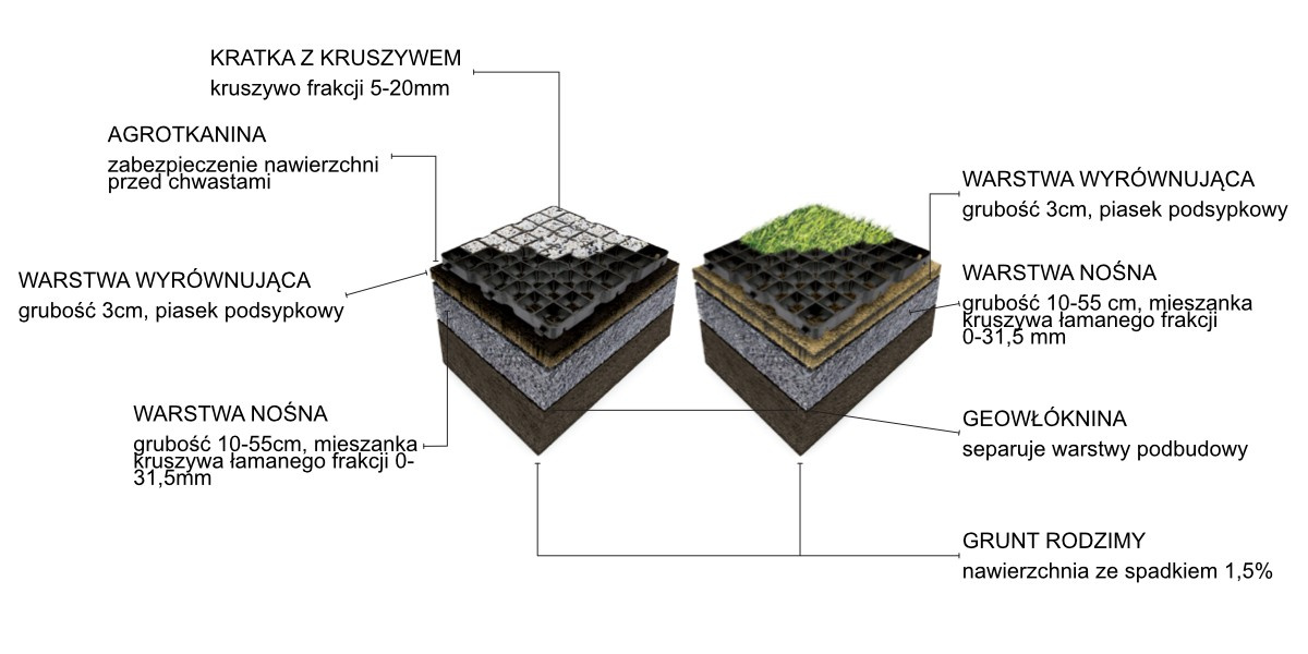 Kratka może być stosowana do trawy tylko w przypadku, gdy jest kładziona bez podbudowy-rekreacyjnie w ogrodzie. Kratka ułożona bez podbudowy nie nadaje się pod ruch kołowy.