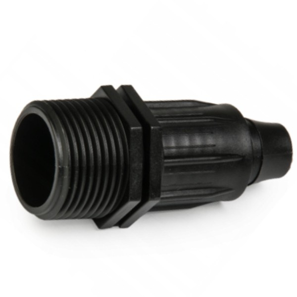 Łącznik QJ do rur PE o średnicy 16mm pozwalający na łączenie elementów systemu nawadniającego z rurami. Z jednej strony posiada wtyk na wąż 16mm, z drugiej gwint zewnętrzny o średnicy 3/4". Produkt został wykonany z wysokiej jakości tworzywa sztucznego. Łączy się między innymi z rurami zasilającymi, montażowymi i linią kroplującą.