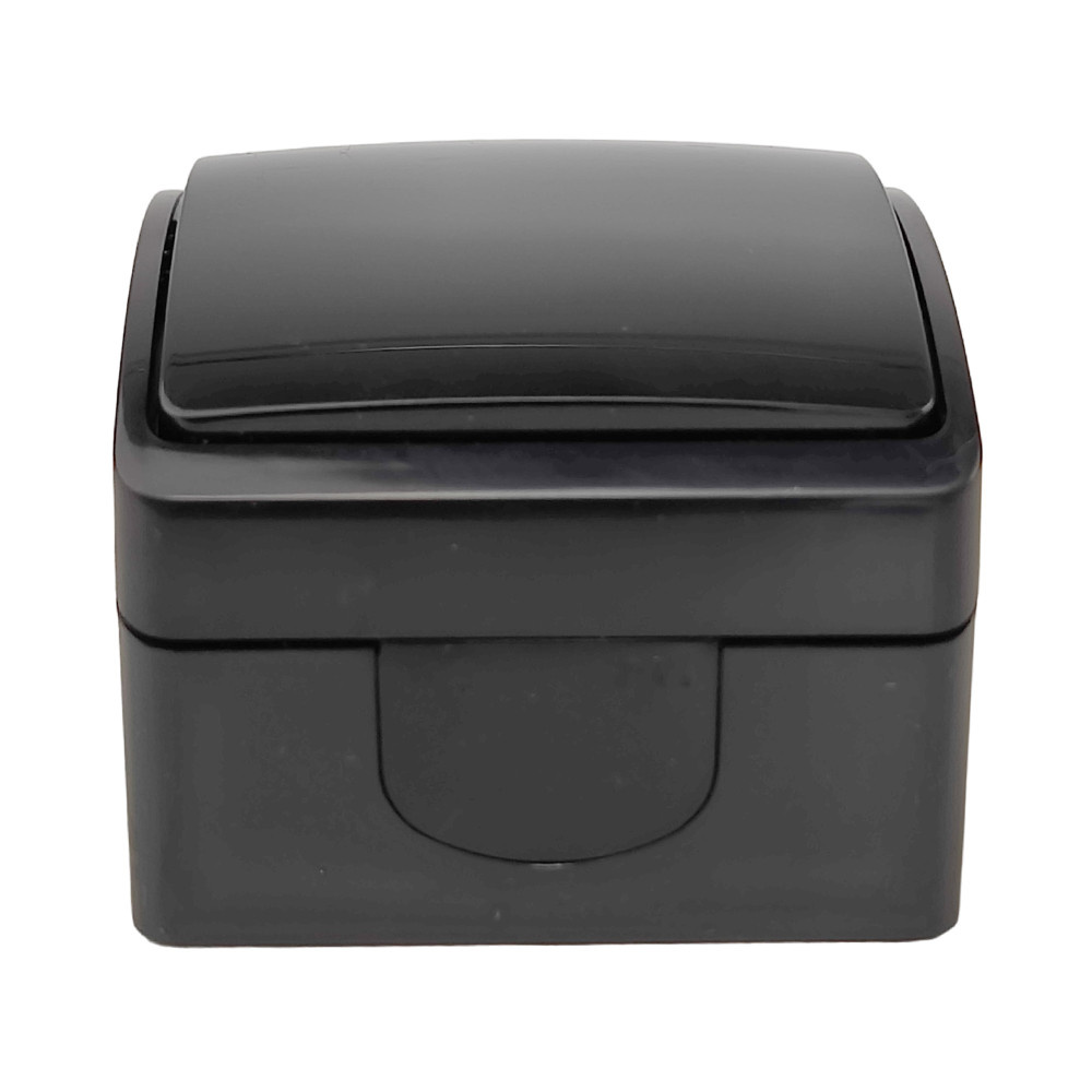 Łącznik jednobiegunowy natynkowy o wymiarach 62×74×49 mm z klasą szczelności IP44. Czarny łącznik 151-05 ViPlast, do montażu natynkowego.