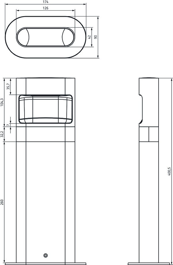 szerokość: 174 mm wysokość / głębokość: 401 mm długość: 90 mm