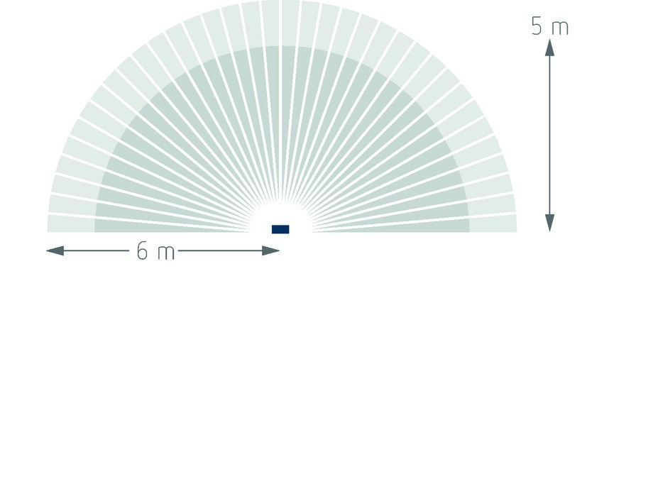Wysokiej jakości obudowa z anodowanego, wytłaczanego profilu aluminiowego z automatycznym sterowaniem oświetlenia w zależności od obecności i jasności, kąt wykrywania 180 ° przy średnicy 12m