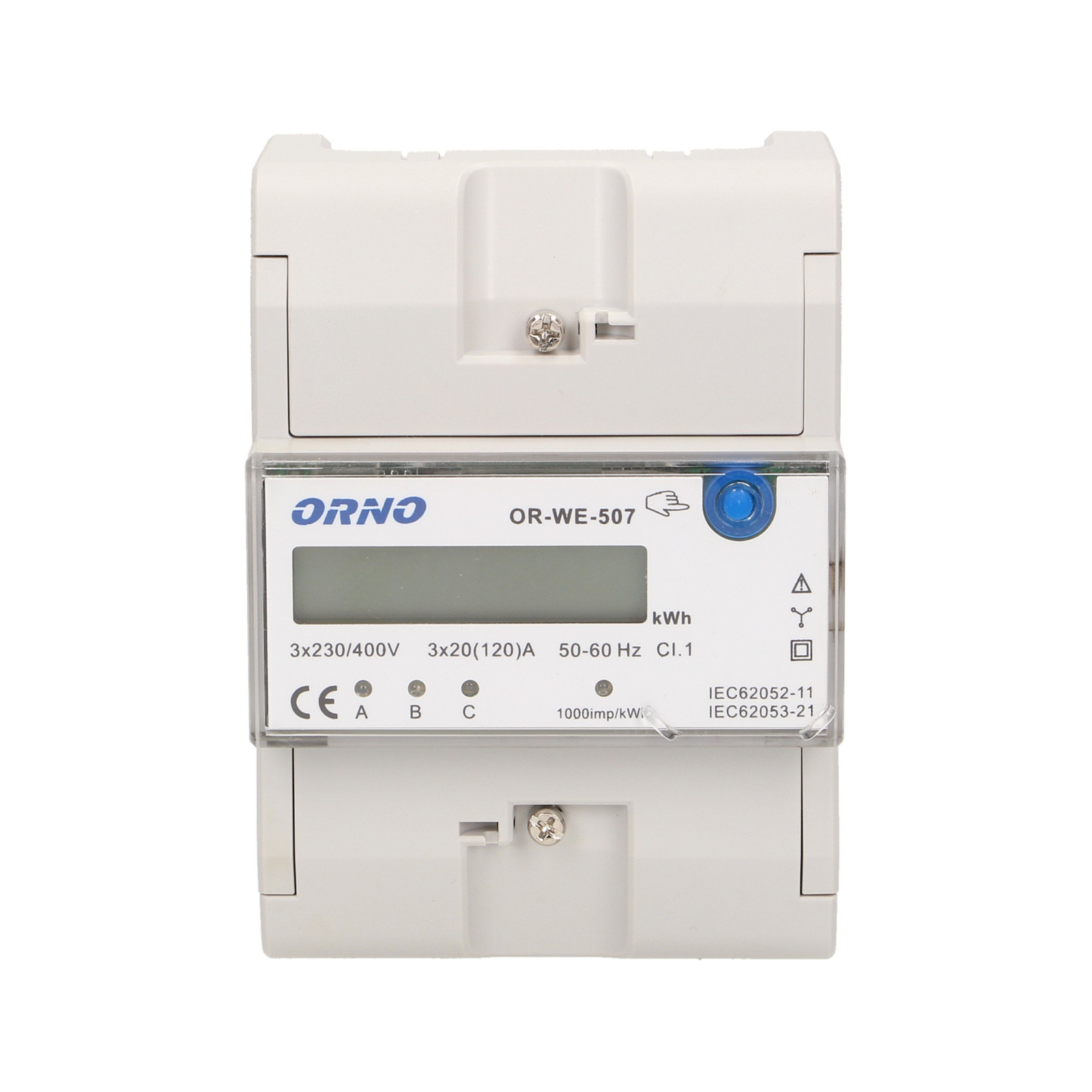 3-fazowy wskaźnik energii elektrycznej. 120A. 5 modułów. DIN TH-35mm. dodatkowy przycisk OR-WE-507