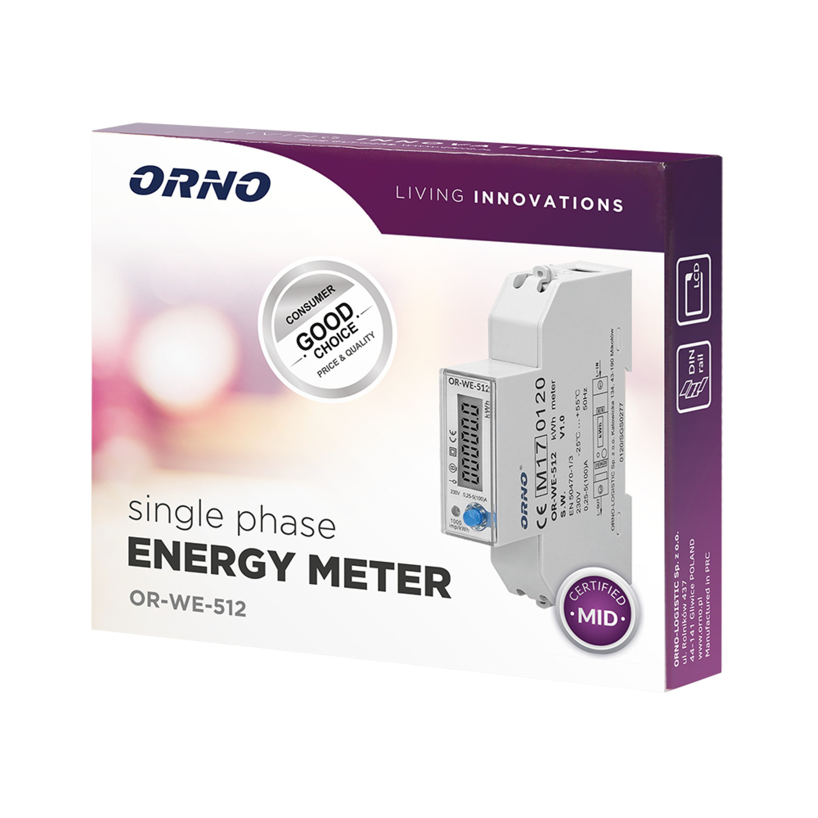 1-fazowy licznik energii elektrycznej. 100A. MID. 1 moduł. DIN TH-35mm OR-WE-512