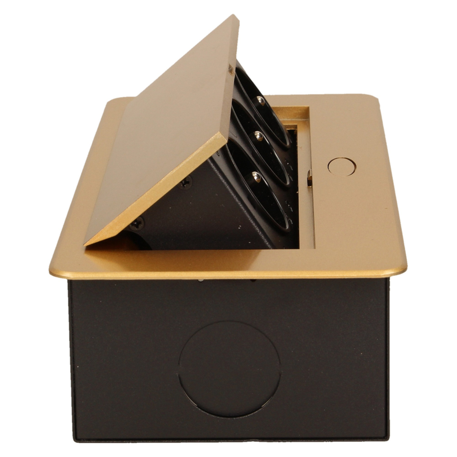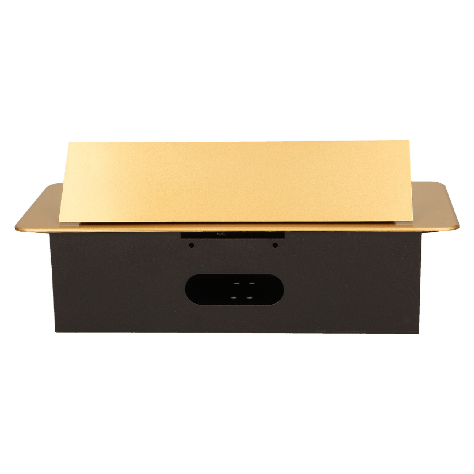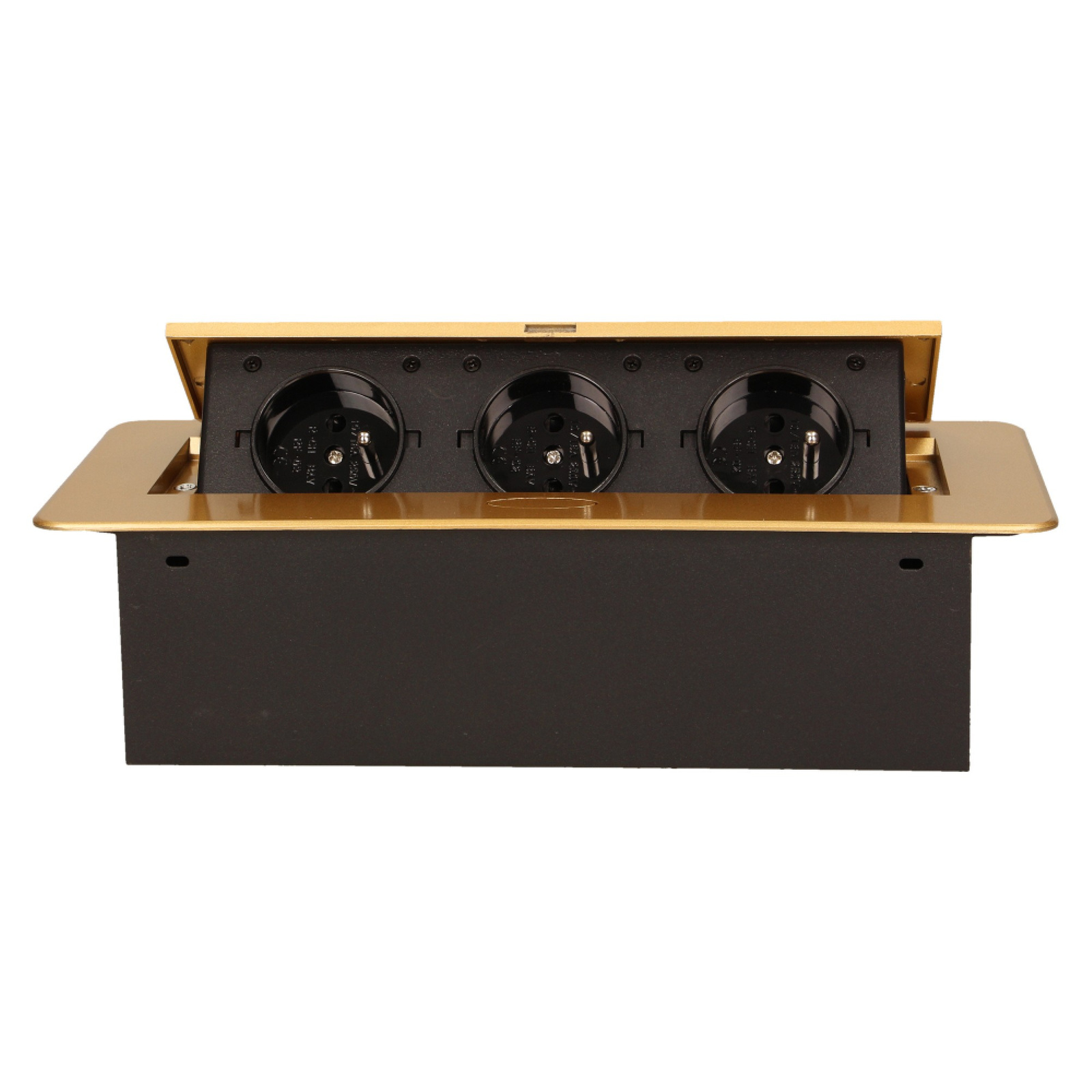 Gniazdo meblowe wpuszczane w blat z płaskim, frezowanym rantem, 3x2P+Z, złote