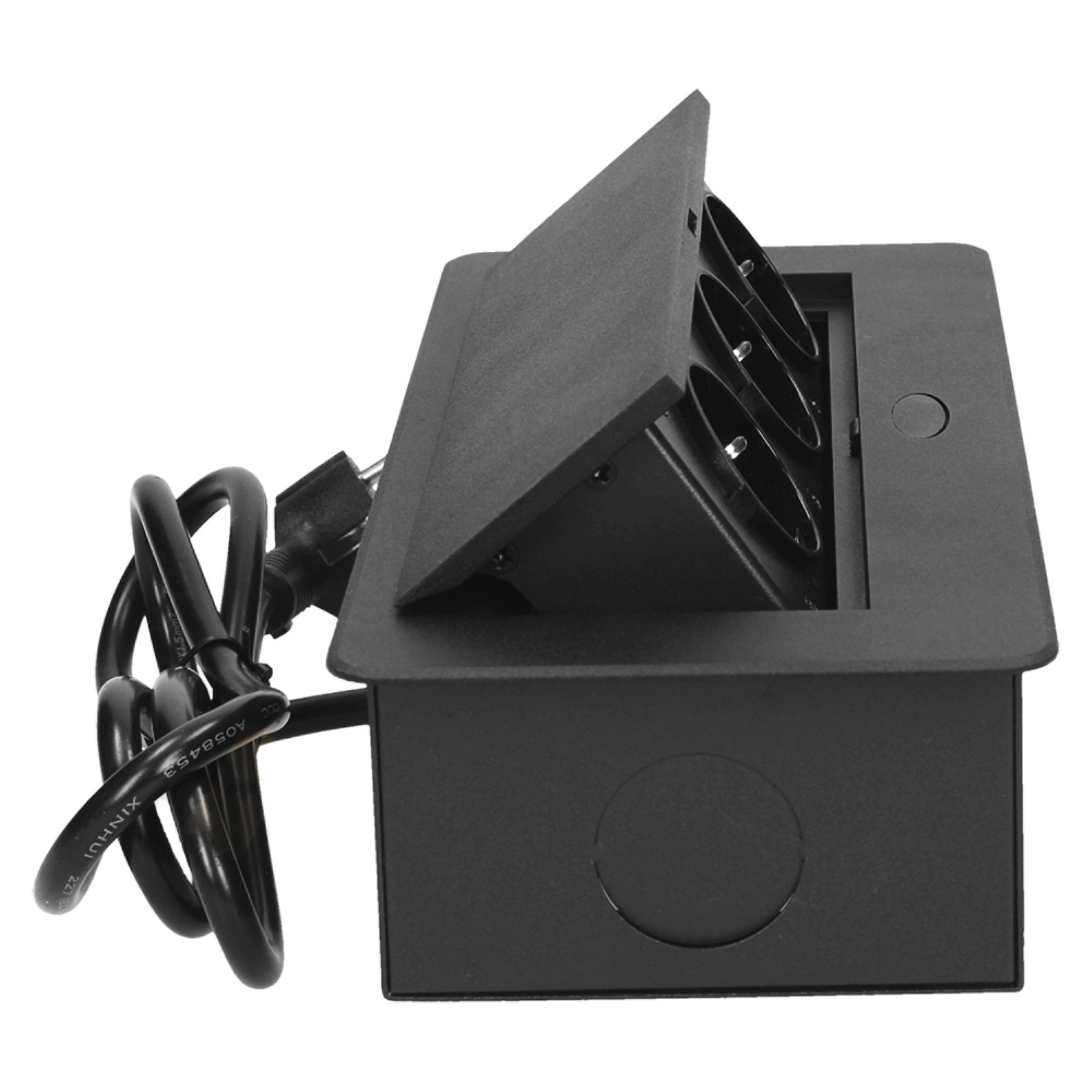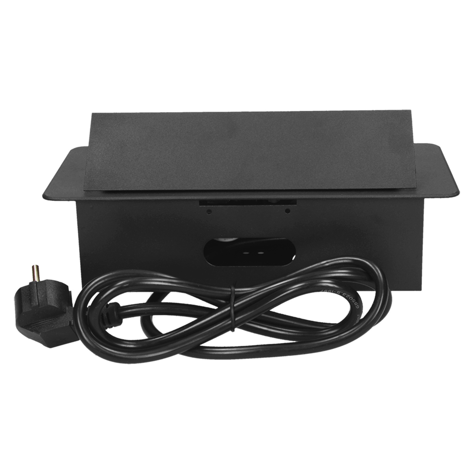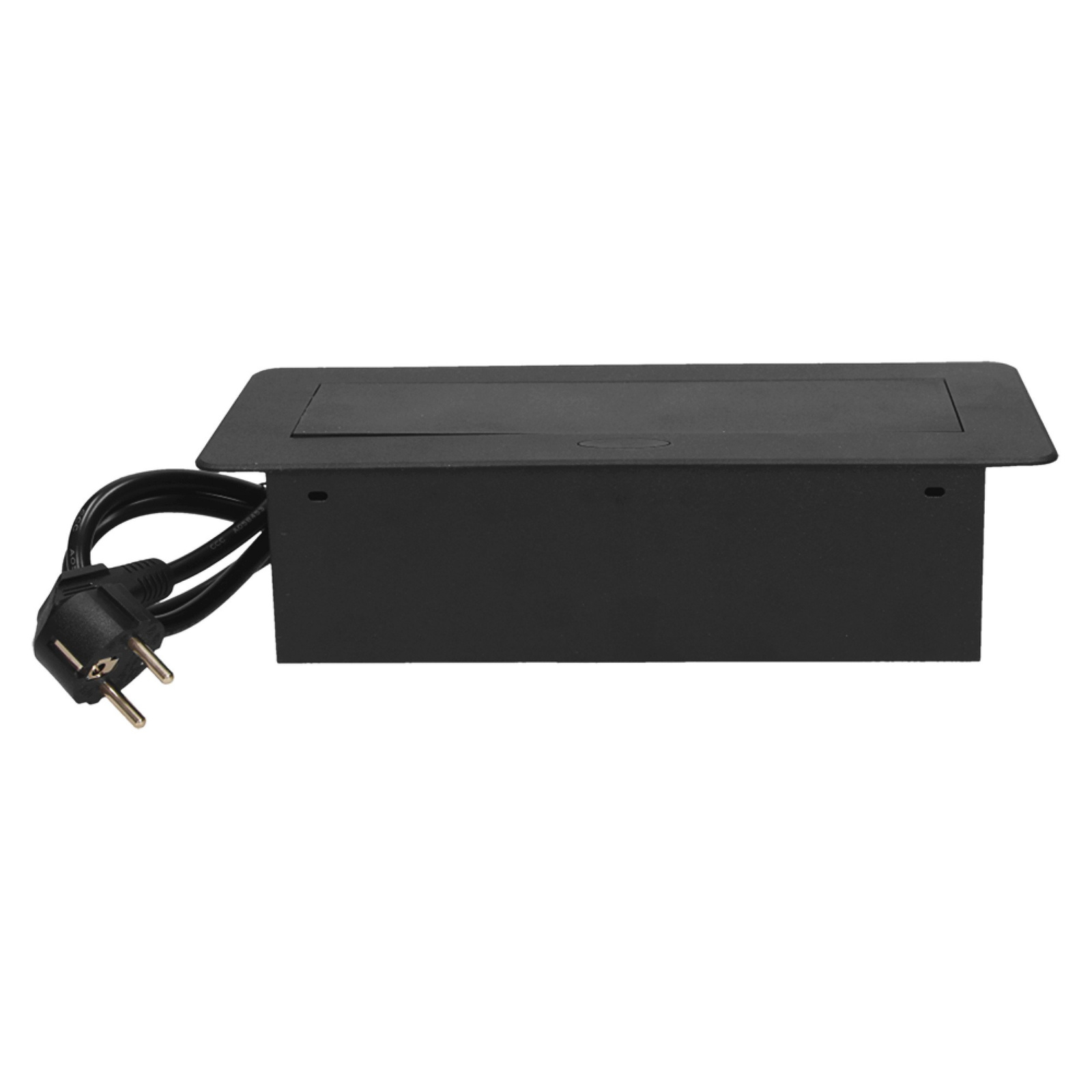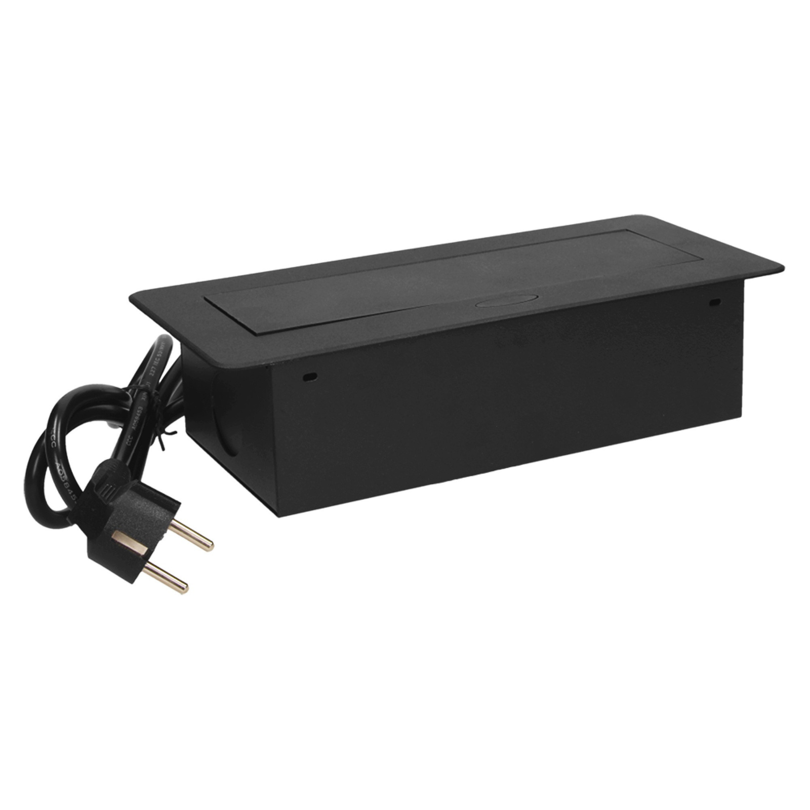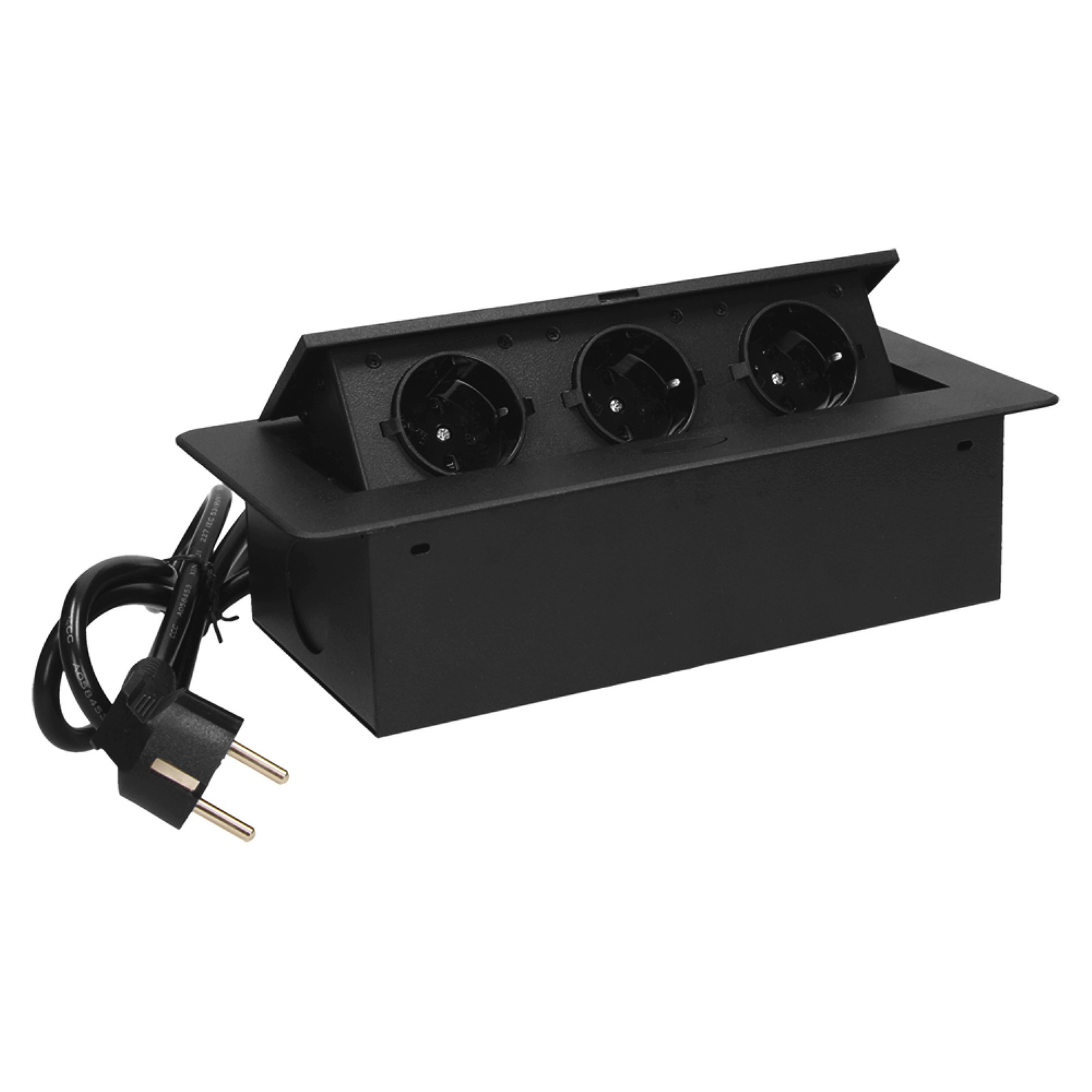 Gniazdo meblowe wpuszczane w blat z płaskim frezowanym rantem i przewodem 1,5m, 3x2P+Z, czarne, wersja schuko