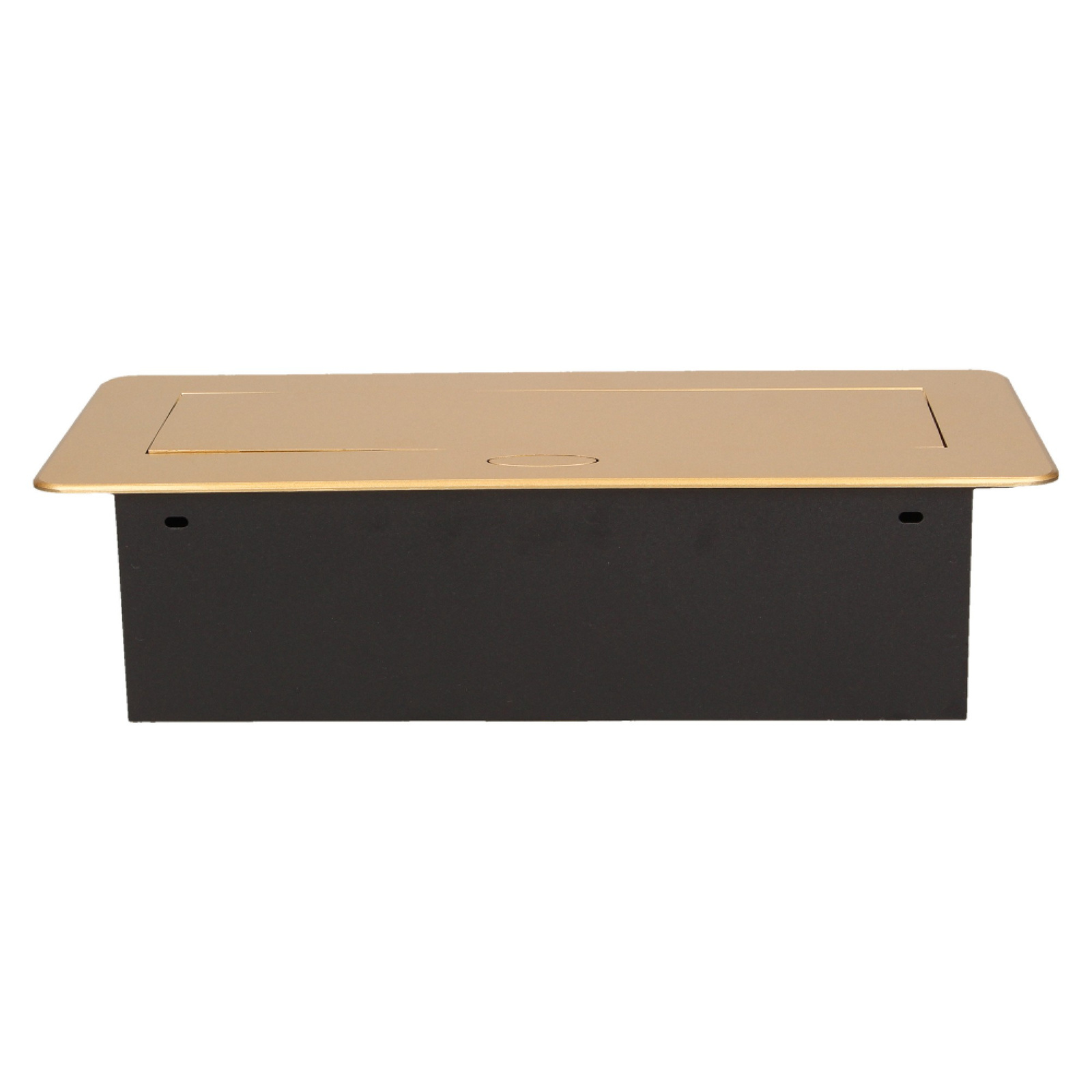 Zestaw trzech gniazd sieciowych z uziemieniem i przesłonami torów prądowych w obudowie chowanej w blat. Urządzenie przeznaczone jest do montażu w biurkach, blatach i stołach, może być zamontowane zarówno w pozycji pionowej jak i poziomej, zapewniając dostęp do gniazd elektrycznych. Posiada zamykany panel z gniazdami sieciowymi oraz przewód o długości 1,5 m. Dostępne kolory: czarny, srebrny, złoty, mosiądz, grafit.