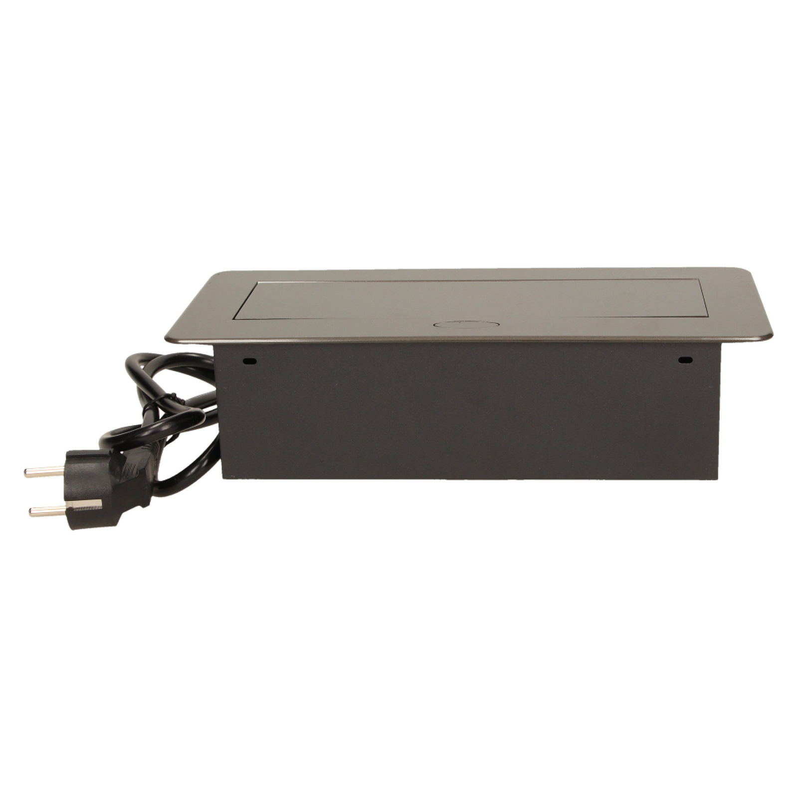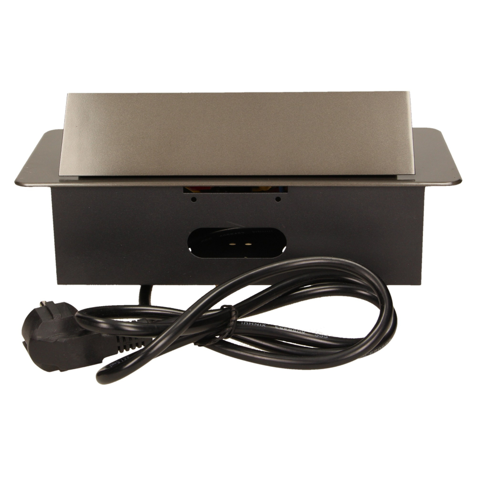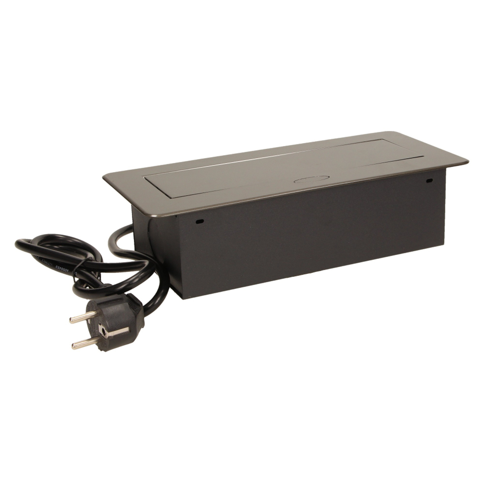 Gniazdo meblowe wpuszczane w blat z płaskim frezowanym rantem i przewodem 1,5m, 3x2P+Z, grafit
