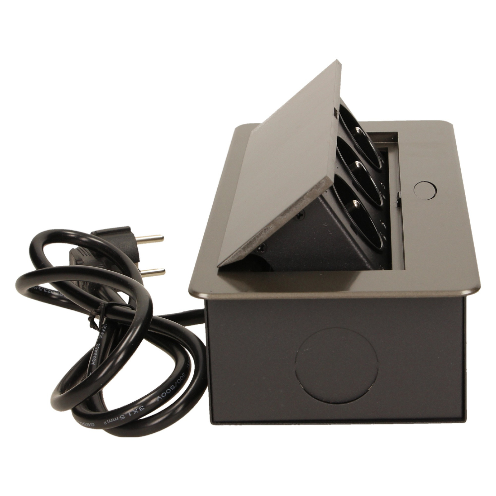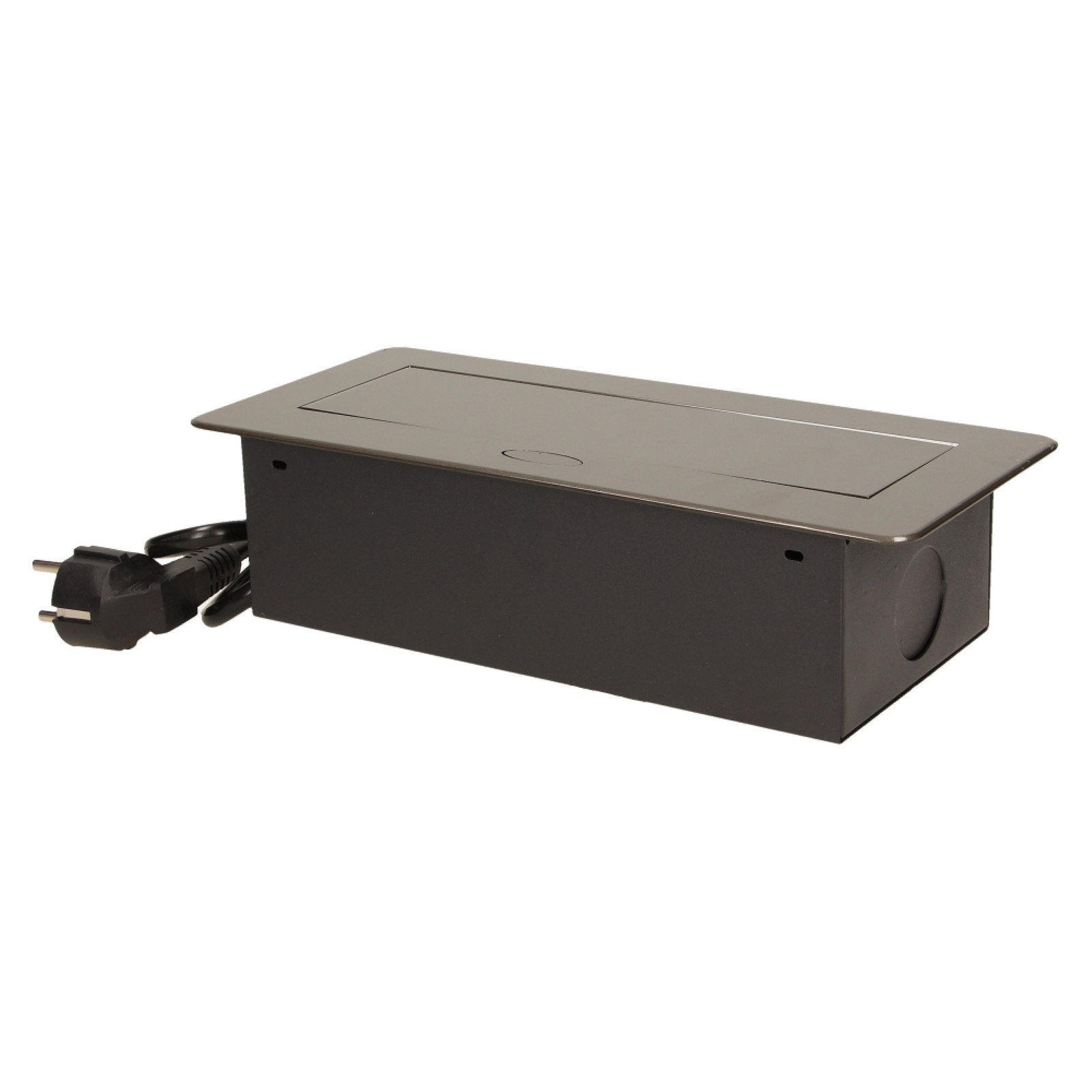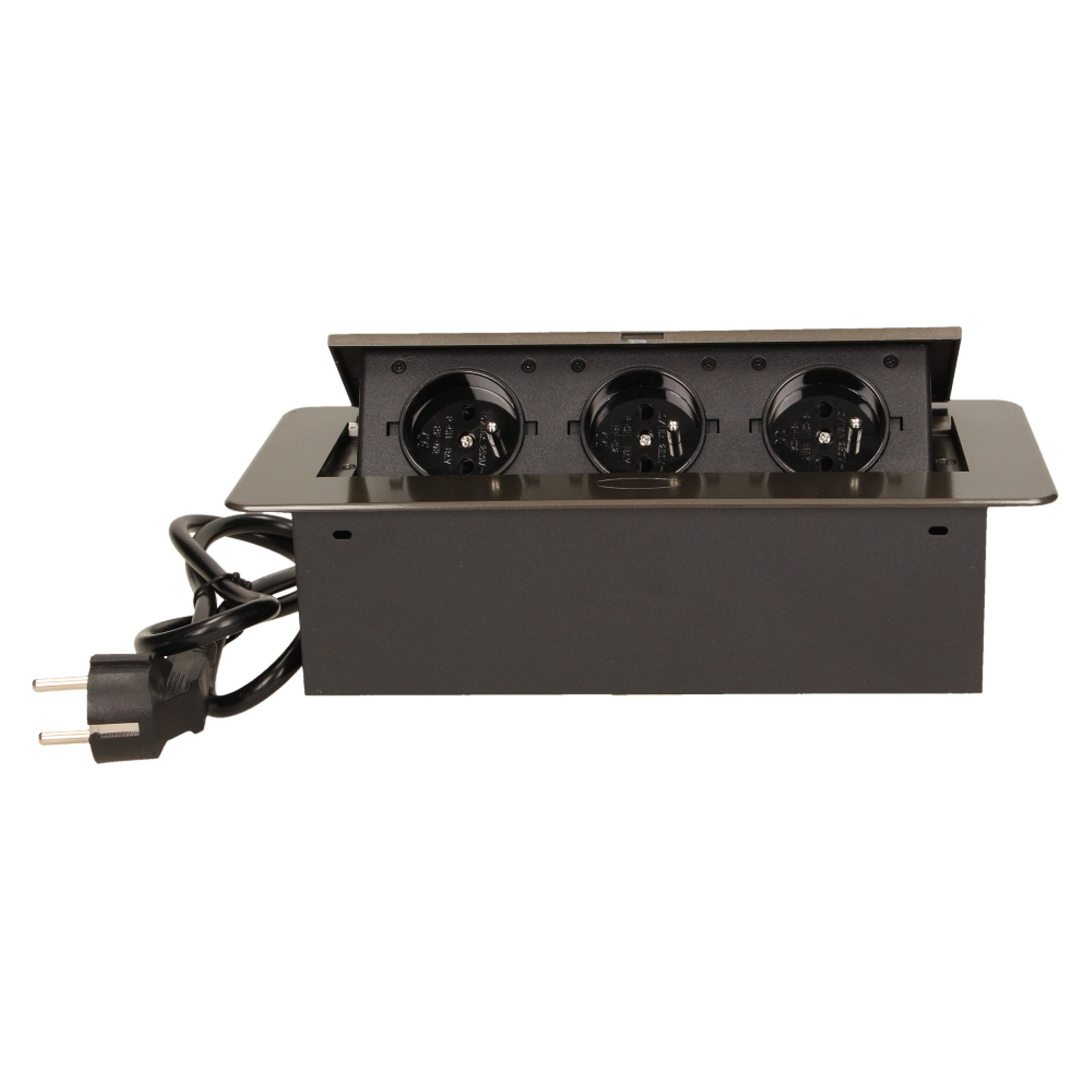 Gniazdo meblowe wpuszczane w blat z płaskim frezowanym rantem i przewodem 1,5m, 3x2P+Z, grafit