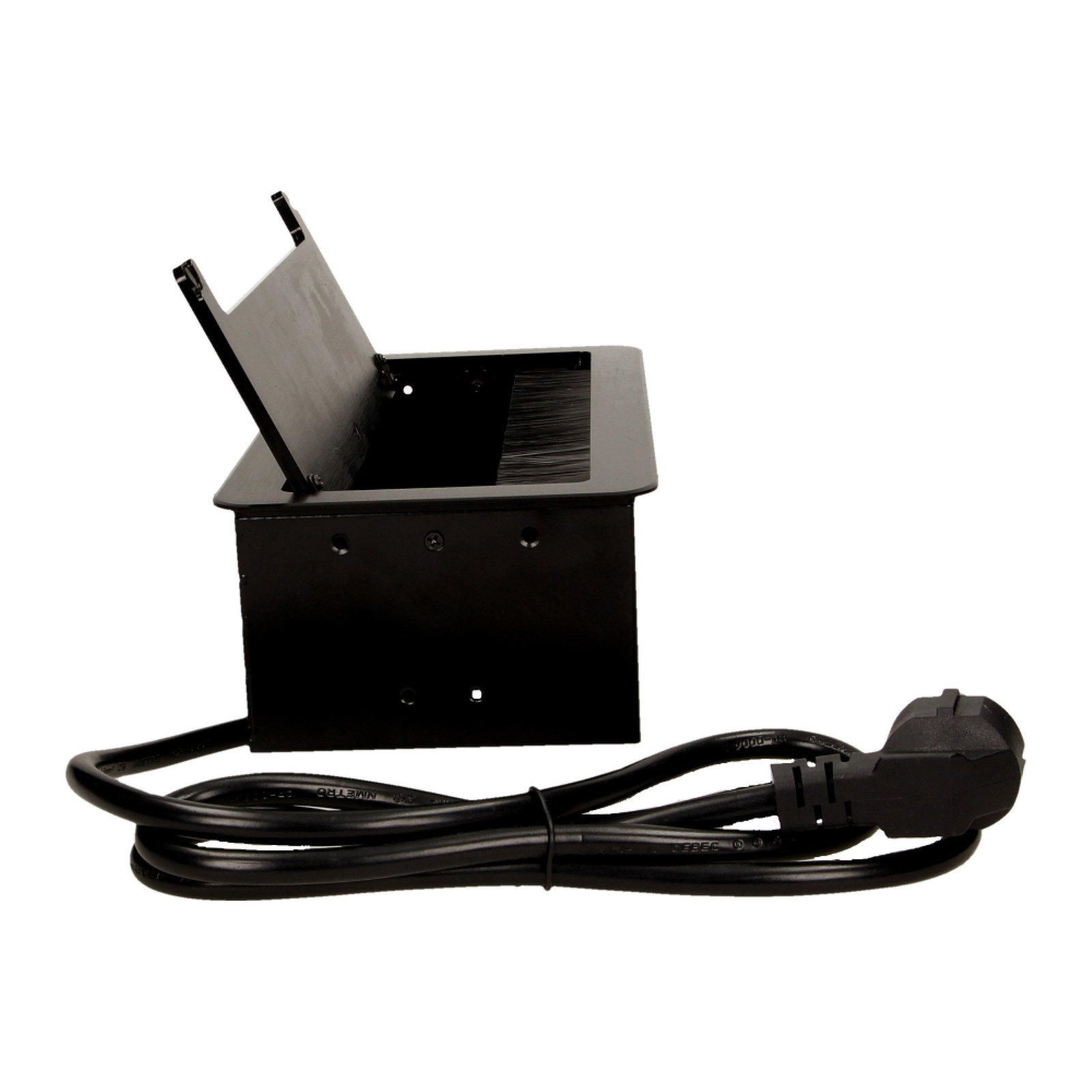 Gniazdo meblowe wpuszczane w blat z płaskim frezowanym rantem, szczotką przeciwkurzową, ładowarką USB i przewodem 1,5m, 2x2P+Z, 2xUSB, 2xNET, czarne