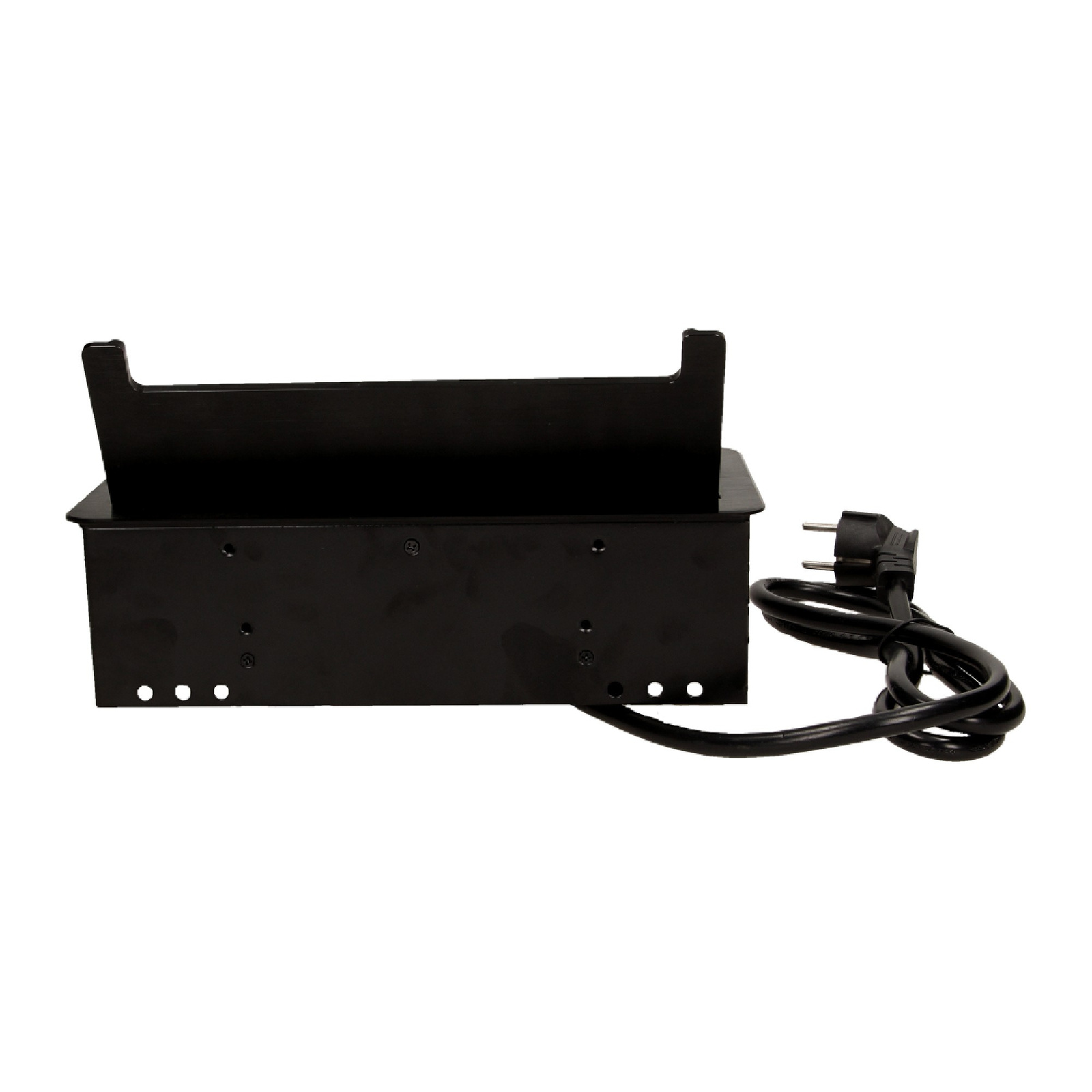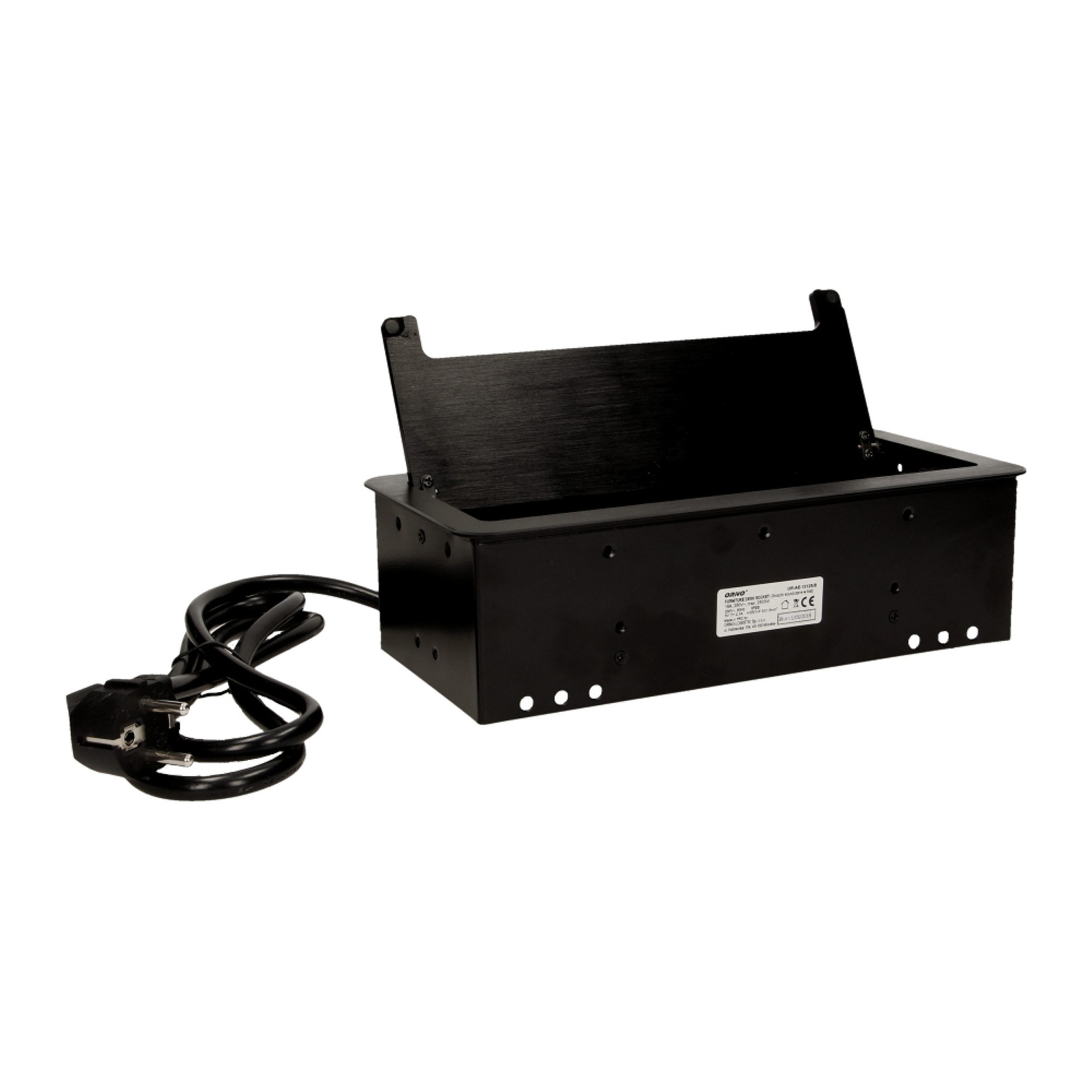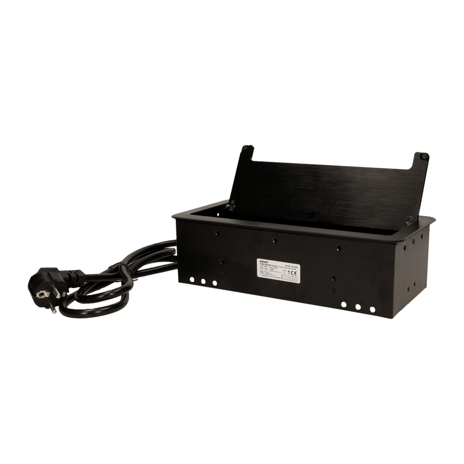 Zestaw dwóch gniazd sieciowych z uziemieniem i przesłonami torów prądowych, połączonych z ładowarką USB, gniazdem network w obudowie chowanej w blat. Urządzenie przeznaczone jest do montażu w biurkach, blatach i stołach. Posiada zamykany panel z gniazdami sieciowymi, szczelinę wykończoną szczotką przeciwkurzową oraz przewód o długości 1,5 m.