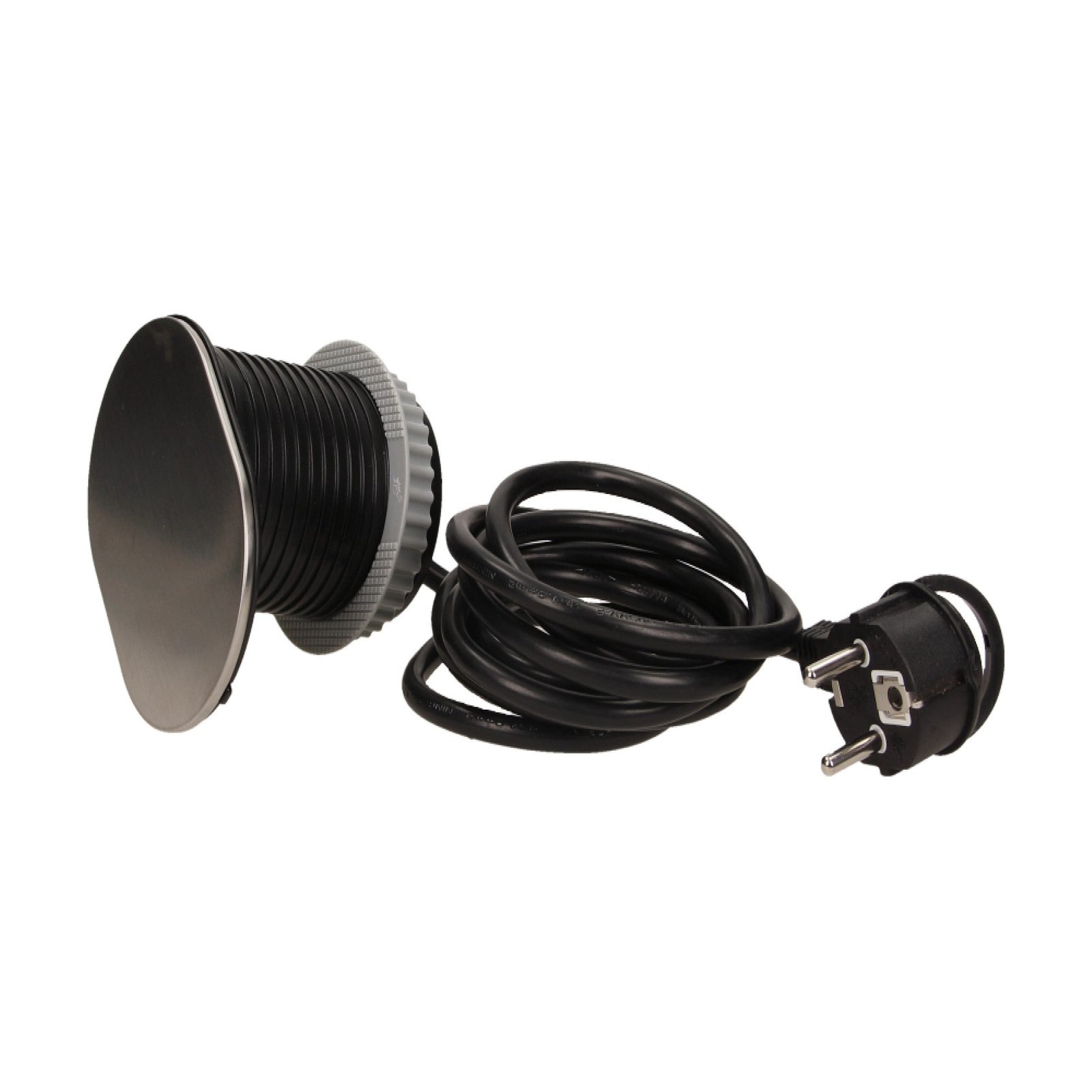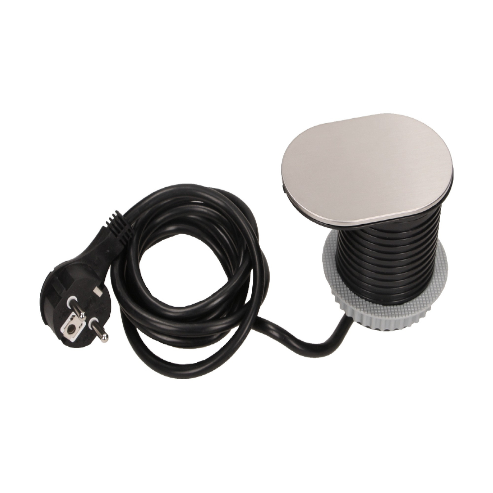 Gniazdo meblowe Ø6cm, wpuszczane w blat z przesuwną pokrywką, ładowarką USB i przewodem 1,9m, 1x2P+Z, 1xUSB (2,4A), 3x1mm²