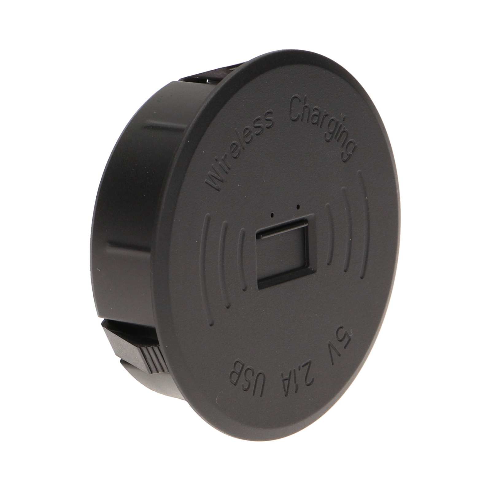 Bezprzewodowa ładowarka kompatybilna ze standardem Qi V1.1 współpracuje z wszelkiego rodzaju urządzeniami mobilnymi np. tablety, smartfony, które posiadają funkcję ładowania indukcyjnego. Przeznaczona do montażu w blatach meblowych, biurkach, stołach konferencyjnych itp. Posiada dodatkowe gniazdo USB do przewodowego ładowania zabezpieczone przesuwaną pokrywą. 2 tryby sygnalizacji naładowania (optyczna – diody LED i dźwiękowa). Maksymalny dystans przy ładowaniu indukcyjnym 3 mm. Dostępne kolory: czarny, biały, srebrny.