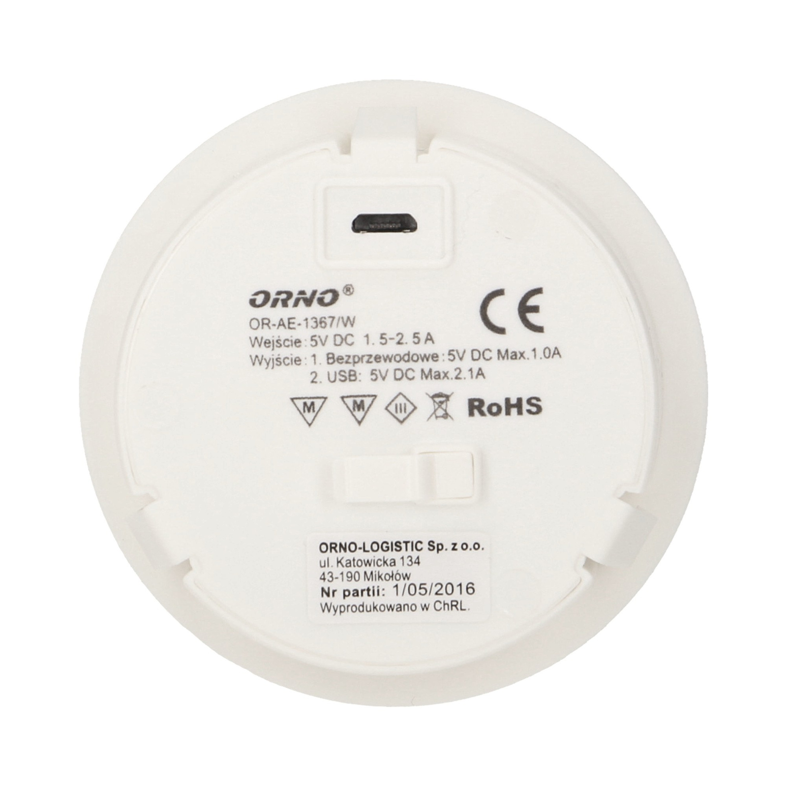 Bezprzewodowa ładowarka indukcyjna z dodatkowym portem USB. biała OR-AE-1367/W