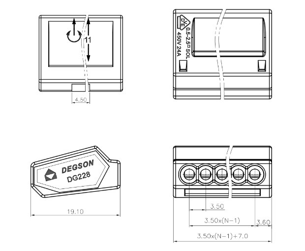 Szybkozłączki serii DG228-3.5 są używane do podłączania przewodów w puszkach instalacyjnych. Cechują się wysoką jakością zgodną z normą EN60998 i aprobatą VDE. Małe gabaryty ułatwiają obsługę, a wysokiej jakości materiały i kontrole jakości w procesie produkcyjnym owocują niezawodnością i bezpieczeństwem pracy złączek do puszek DG228-3.5.