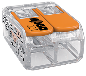 Złączka zaciskowa WAGO pozwala na połączenie pełnych przewodów, żył oraz przewodów drobnozwojowych w sposób szybszy i bardziej niezawodny. Dzięki zastosowaniu złączki możemy zminimalizować ilość miejsca w puszkach połączeniowych. Przezroczysta obudowa pozwala na inspekcję wzrokową prawidłowości połączenia.