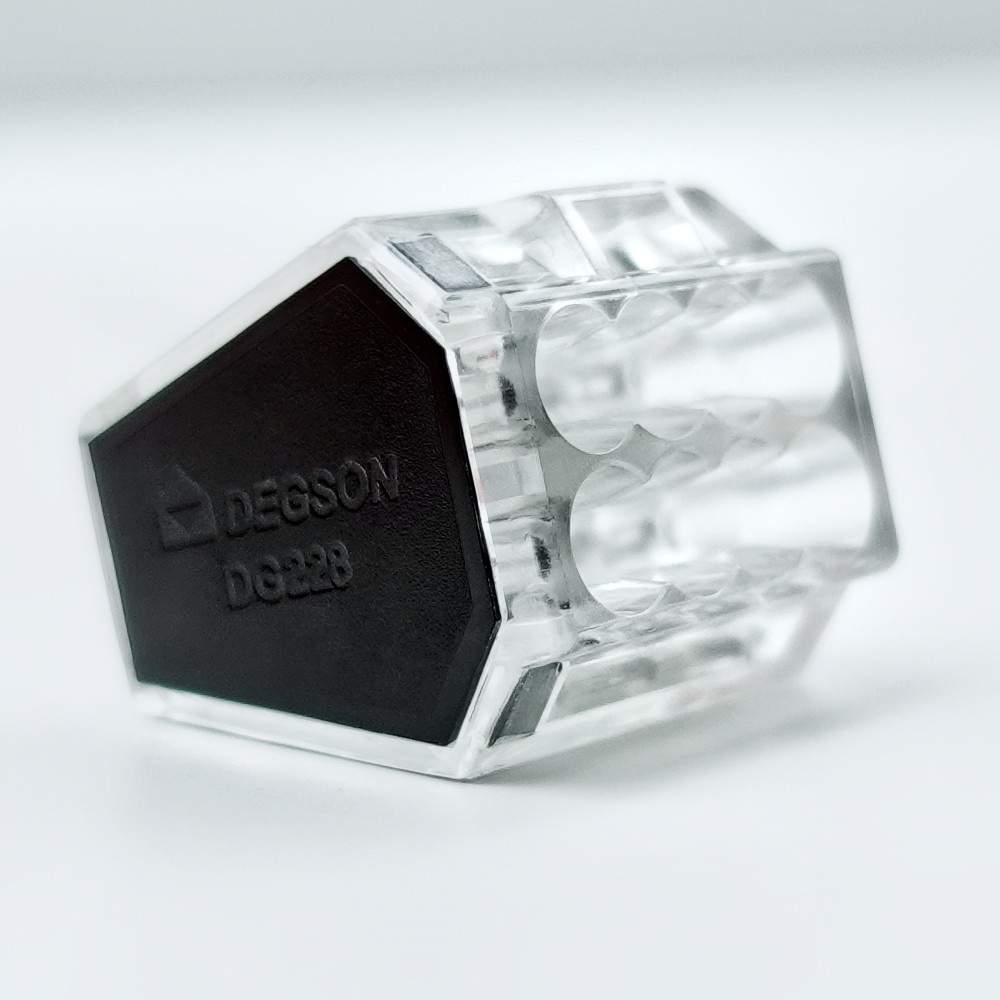 ➡️ Szybkozłączki serii DG228-3.5 są używane do podłączania przewodów w puszkach instalacyjnych. Cechują się wysoką jakością zgodną z normą EN60998 i aprobatą VDE. Małe gabaryty ułatwiają obsługę, a wysokiej jakości materiały i kontrole jakości w procesie produkcyjnym owocują niezawodnością i bezpieczeństwem pracy złączek do puszek DG228-3.5.