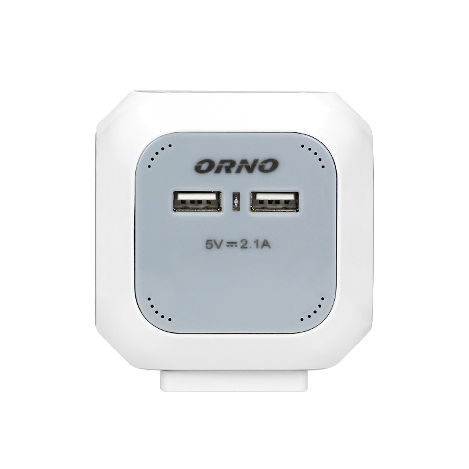 Przedłużacz 4 krotny 2P+Z. ładowarka 2xUSB. 1.4m H05VV-F 3x1mm2. szaro-biały OR-AE-13144