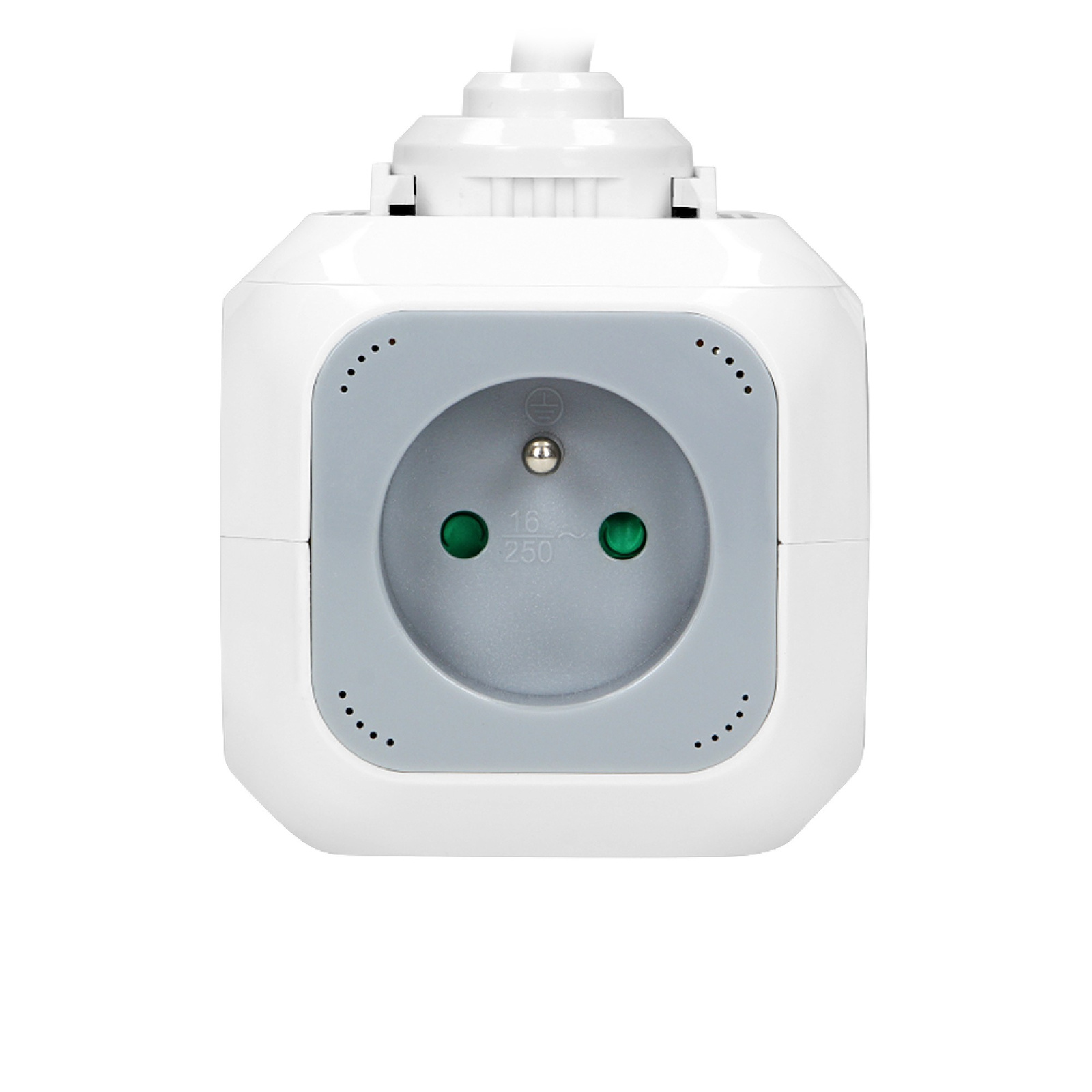 Nowoczesny, przedłużacz sieciowy z innowacyjnym systemem mocującym, który umożliwia montaż na płaszczyznach poziomych i pionowych w trudno dostępnych miejscach np. do ściany lub do powierzchni blatu. Urządzenie posiada cztery gniazda sieciowych z uziemieniem i przesłonami torów prądowych, ładowarkę do wszelkiego typu telefonów, smartfonów, tabletów i innych urządzeń ładowanych przez port USB oraz przewód o długości 1,4 m.