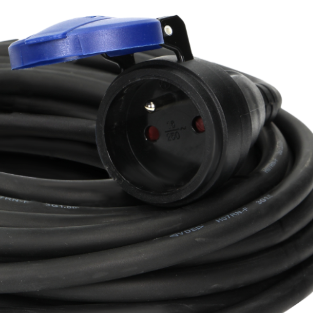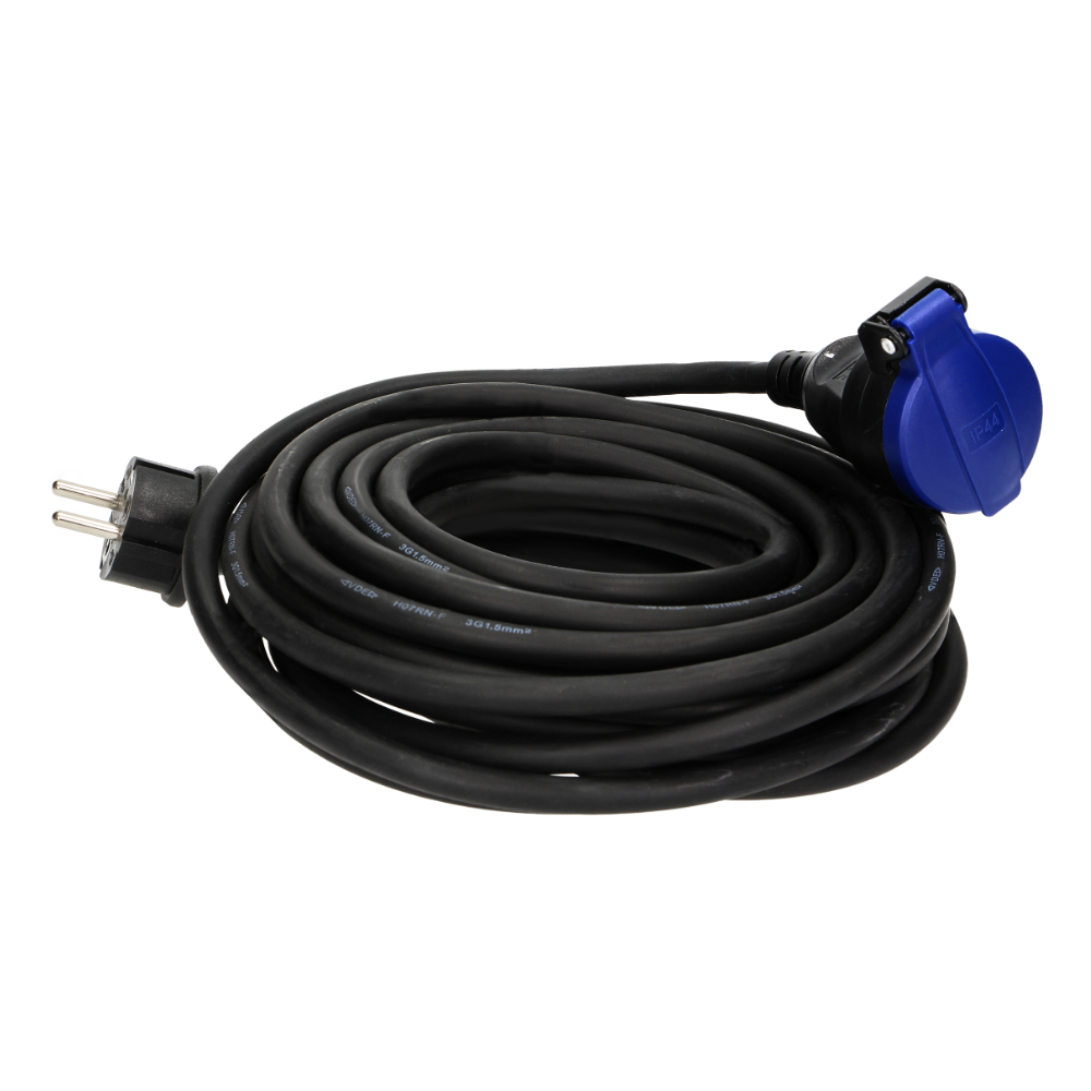 Przedłużacz warsztatowy bryzgoszczelny IP44, 1x2P+Z 10m,kabel gumowy olejoodporny H07RN-F 3x1,5mm², 230VAC/16A